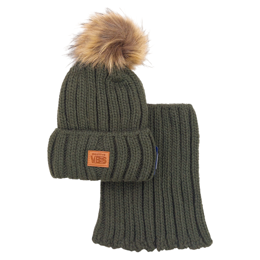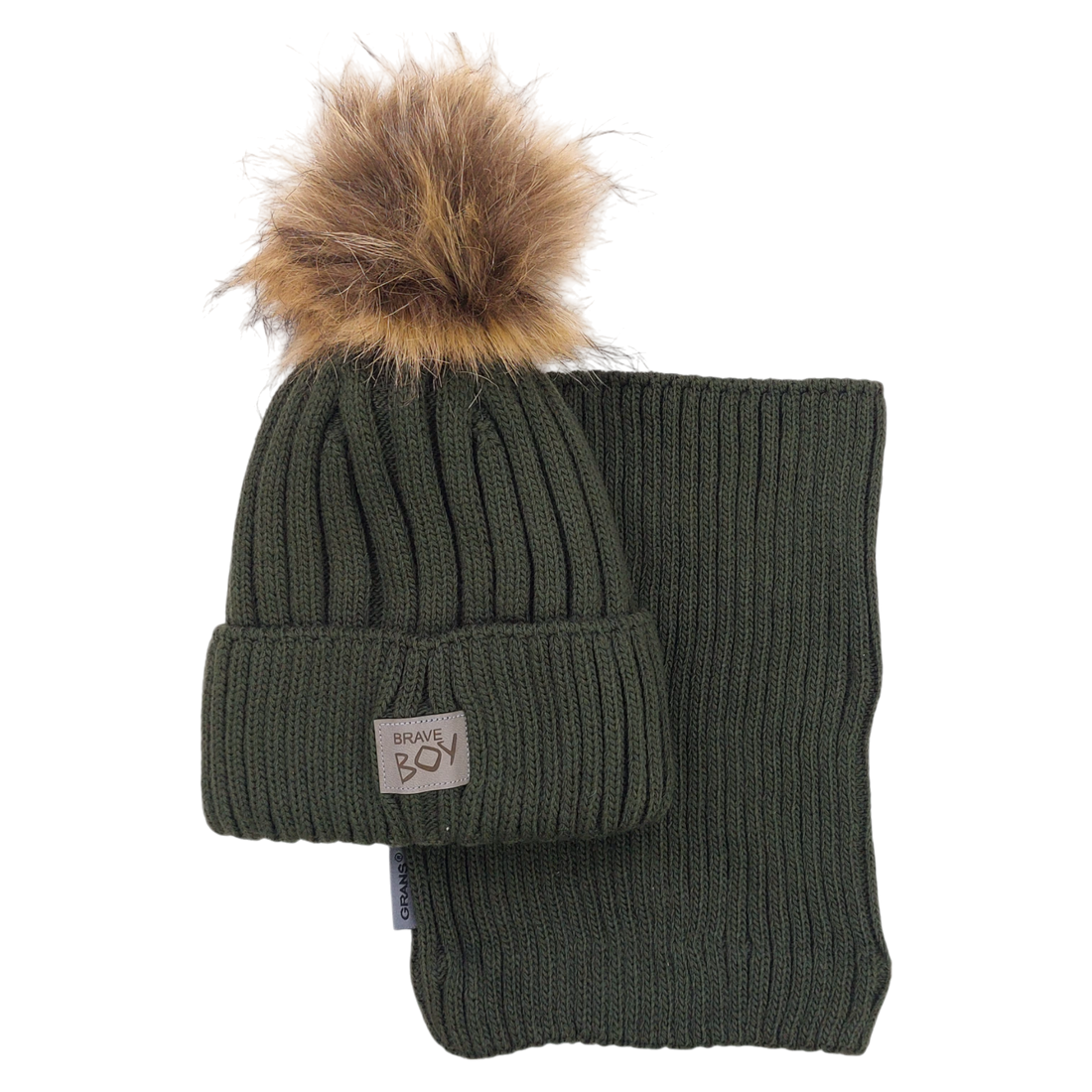 Set aus Mütze mit Schal und Bommel für Jungen, grün, Agbo K-41-241024-48