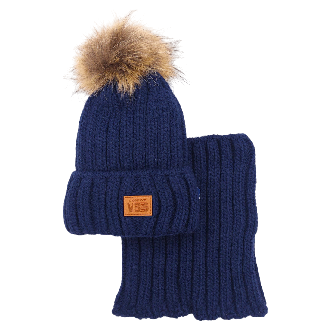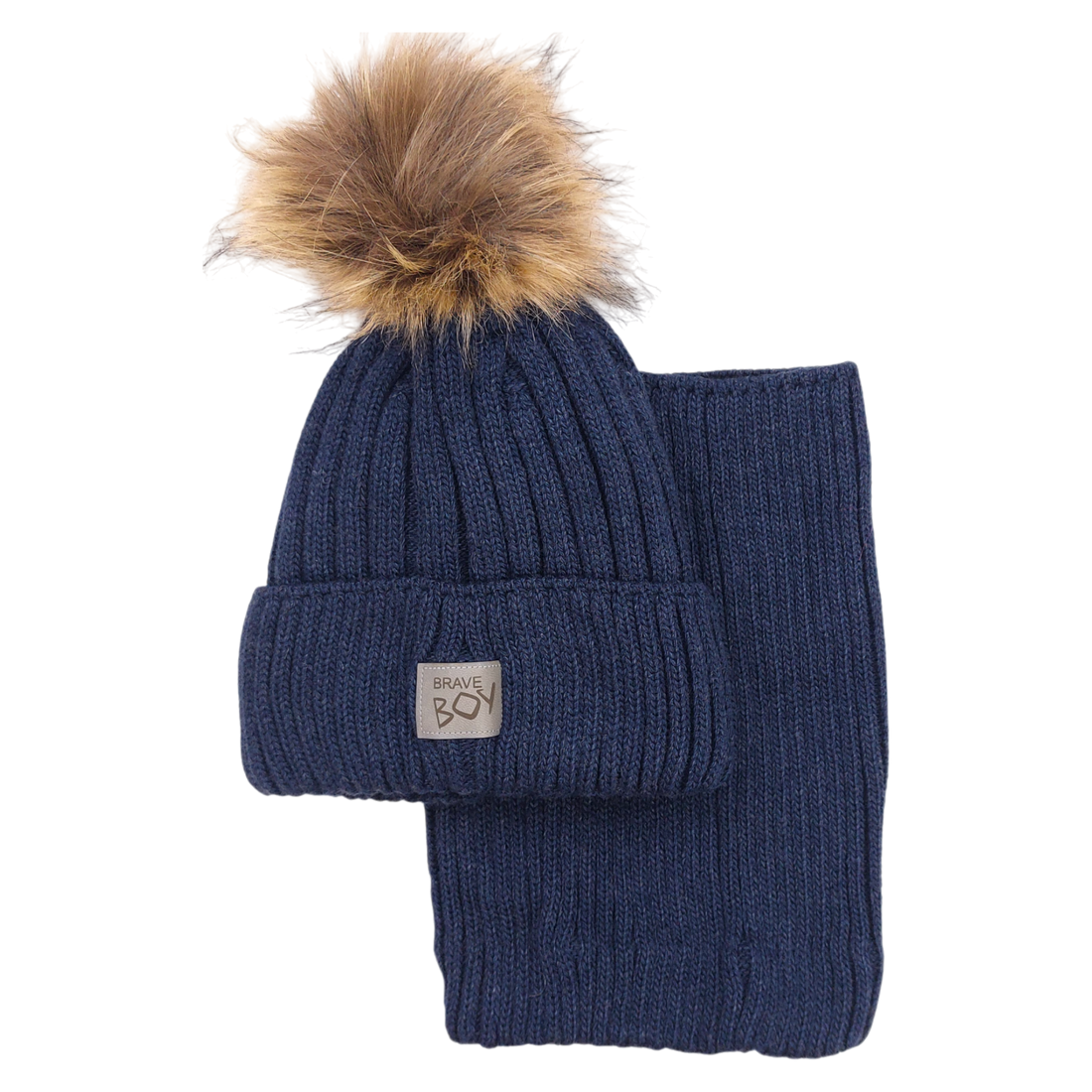 Set aus Mütze mit Schal und Bommel für Jungen, marineblau, Agbo K-41-241024-23
