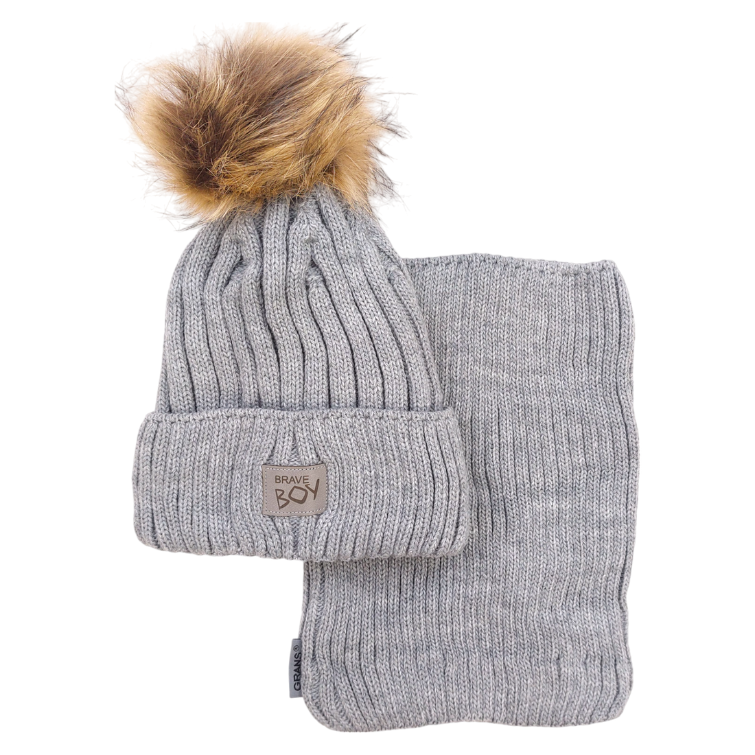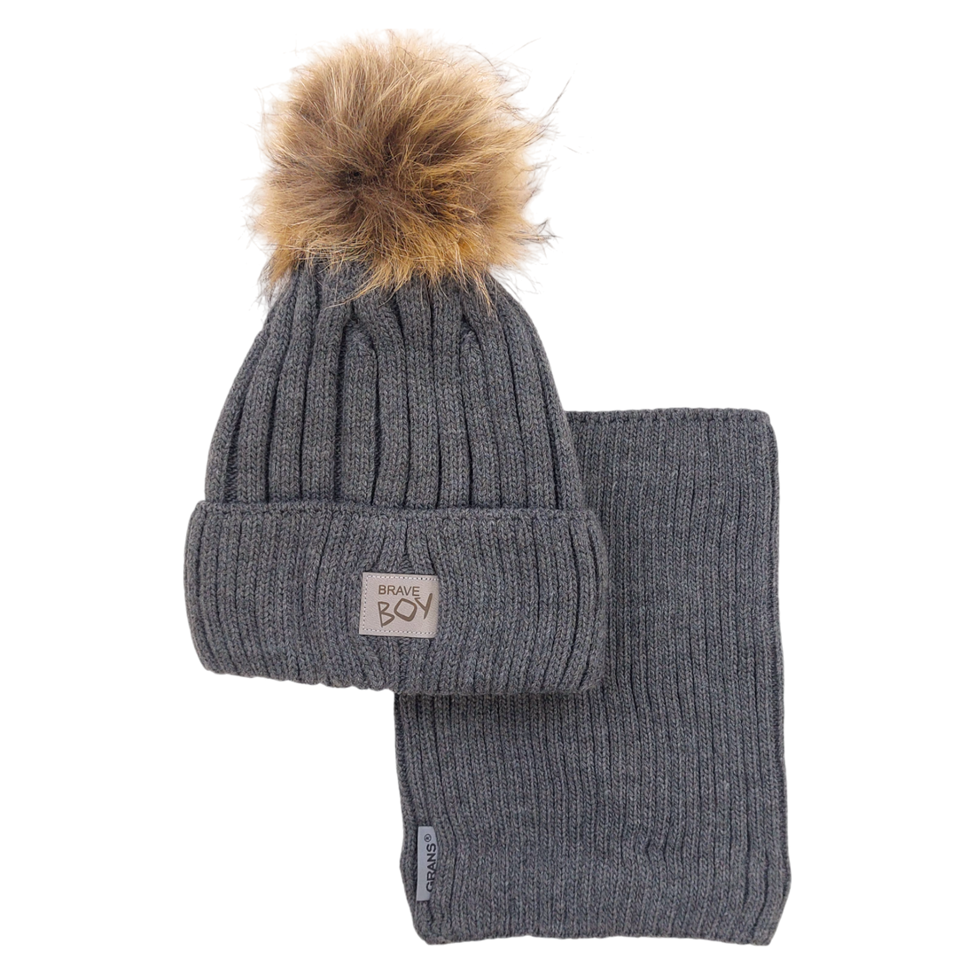Jungen-Mütze- und Schal-Set, grau Grans KA-32-241024-42