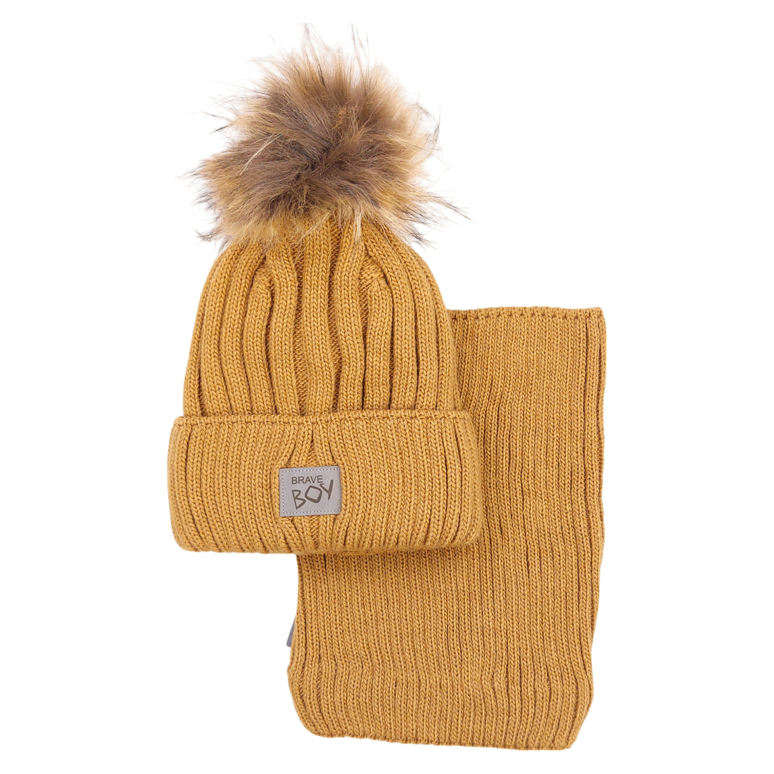 Senfgelbe Jungenmütze mit Bommel und Schal-Set Agbo K-41-241024-60