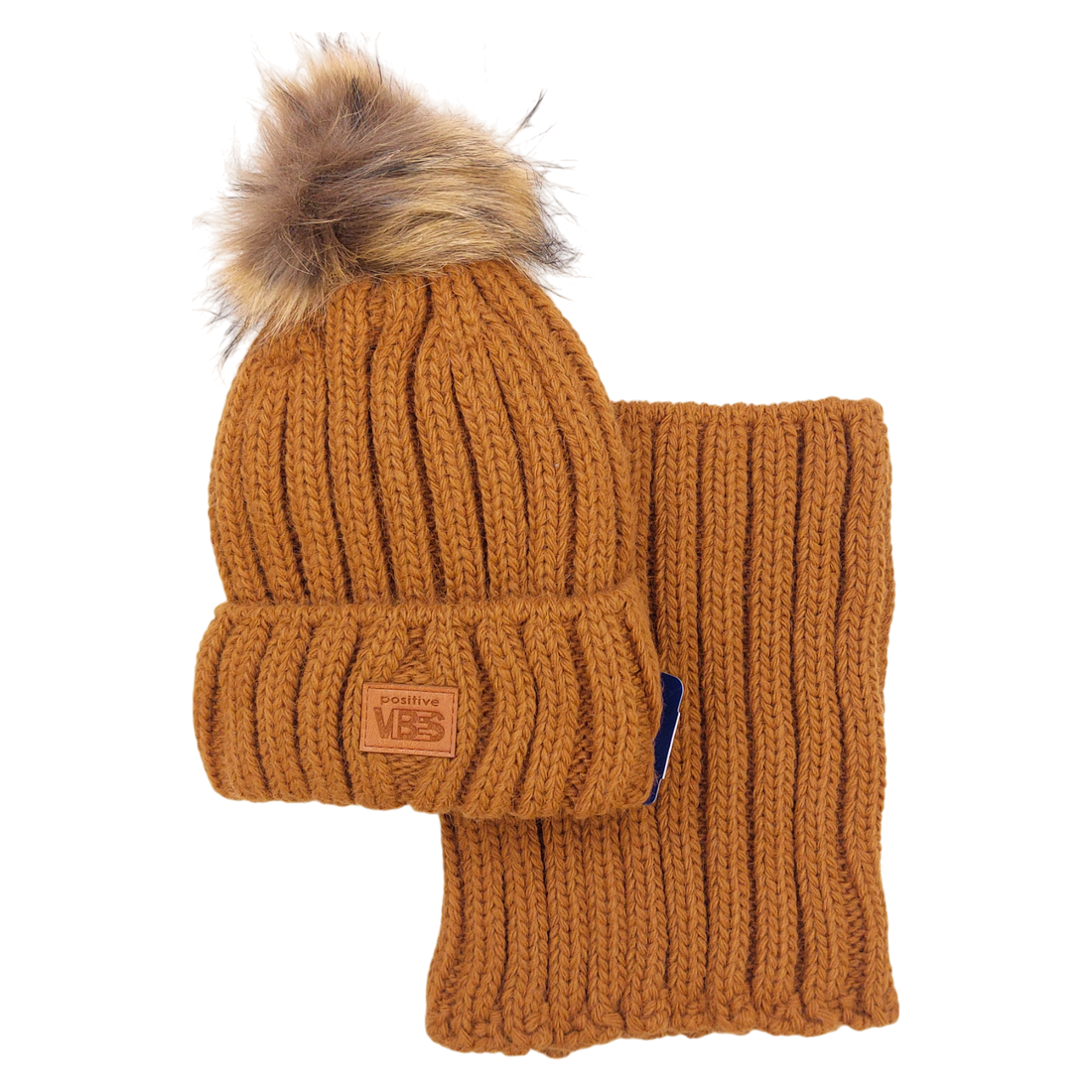 Jungenmütze mit Schal und Bommel-Set, Kamel, Agbo K-41-241024-6