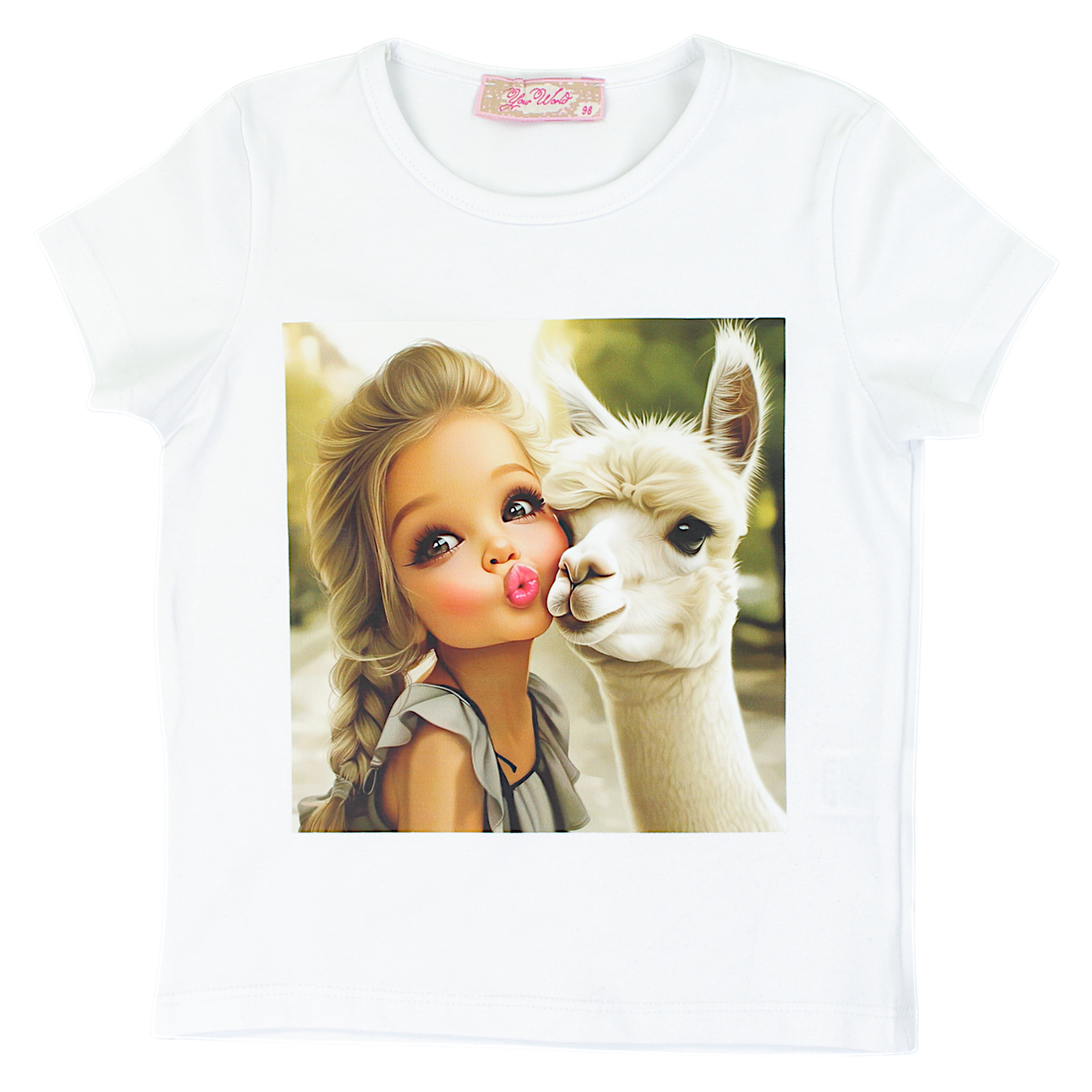 Mädchenbluse mit Lama, weiß Your Word 4321-5325-3