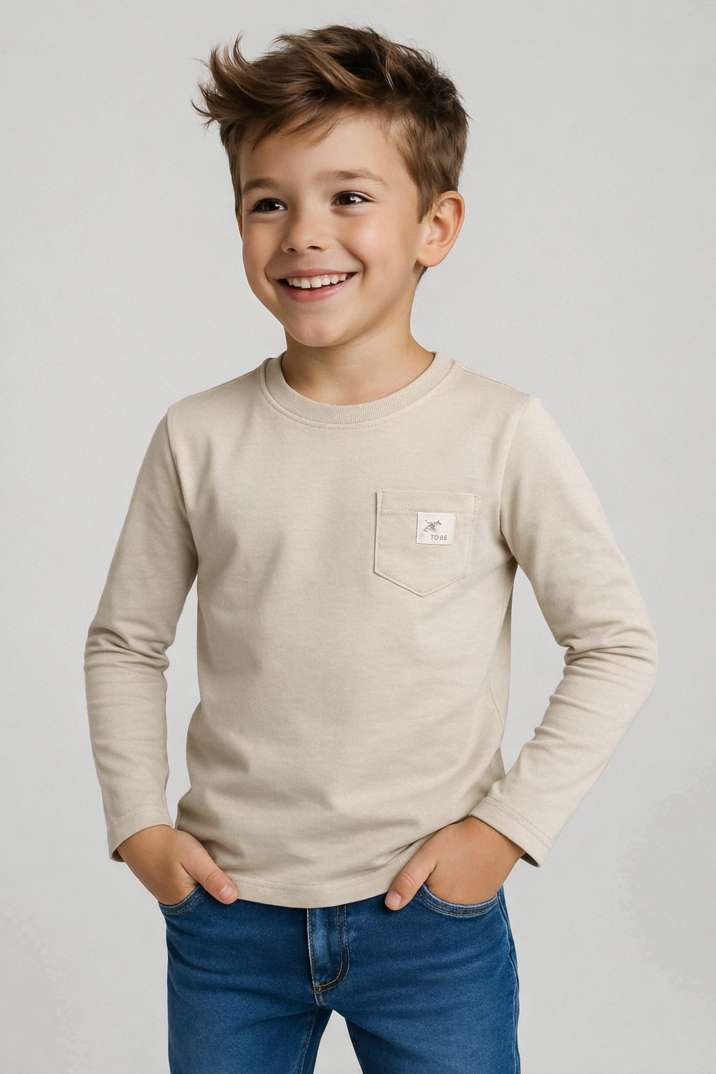 Beige Jungenbluse mit Tasche, Modell Breeze 20813-12925