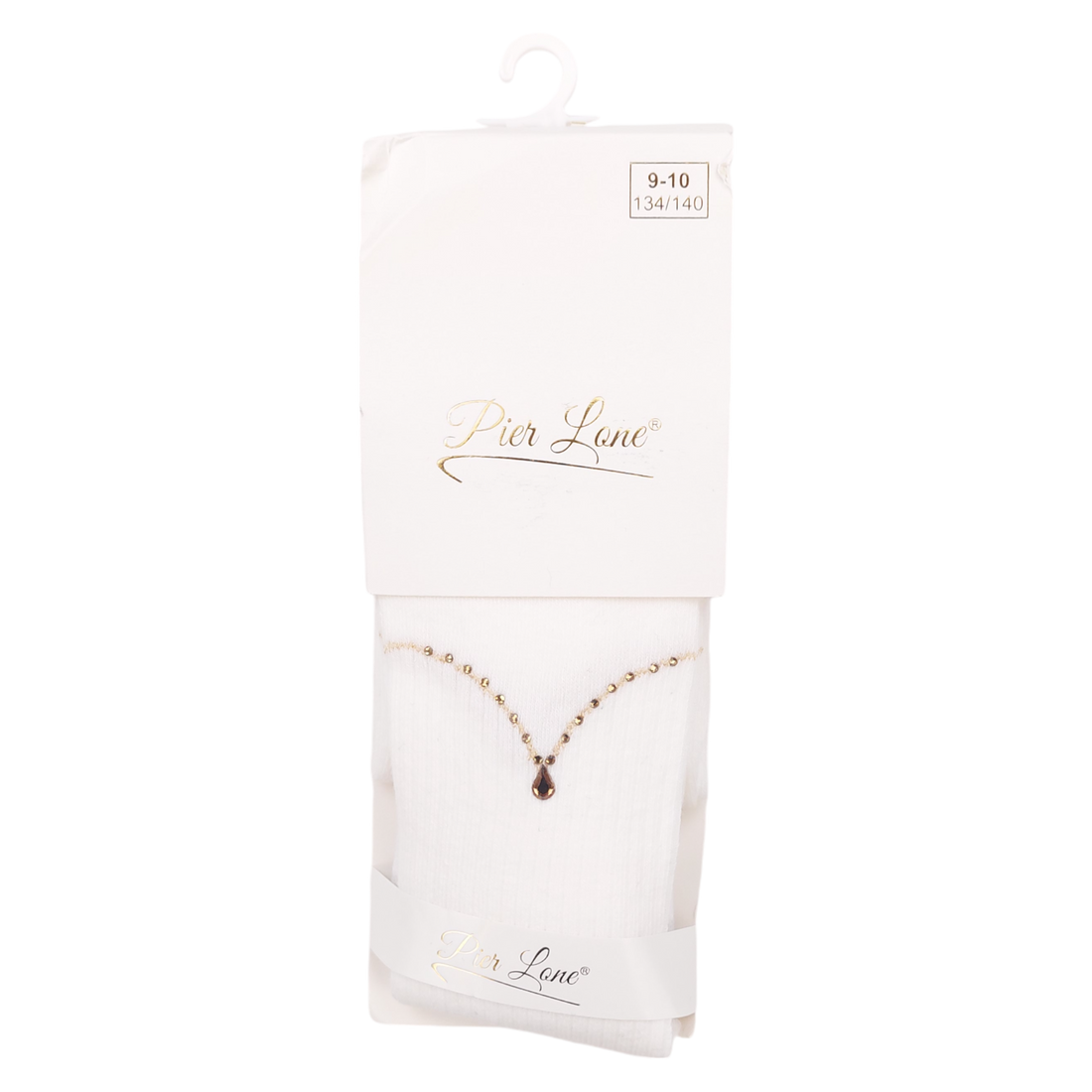 Baumwollstrumpfhose für Mädchen mit Schleife und Rippenmuster, weiß, Pier Lone 1419-81025