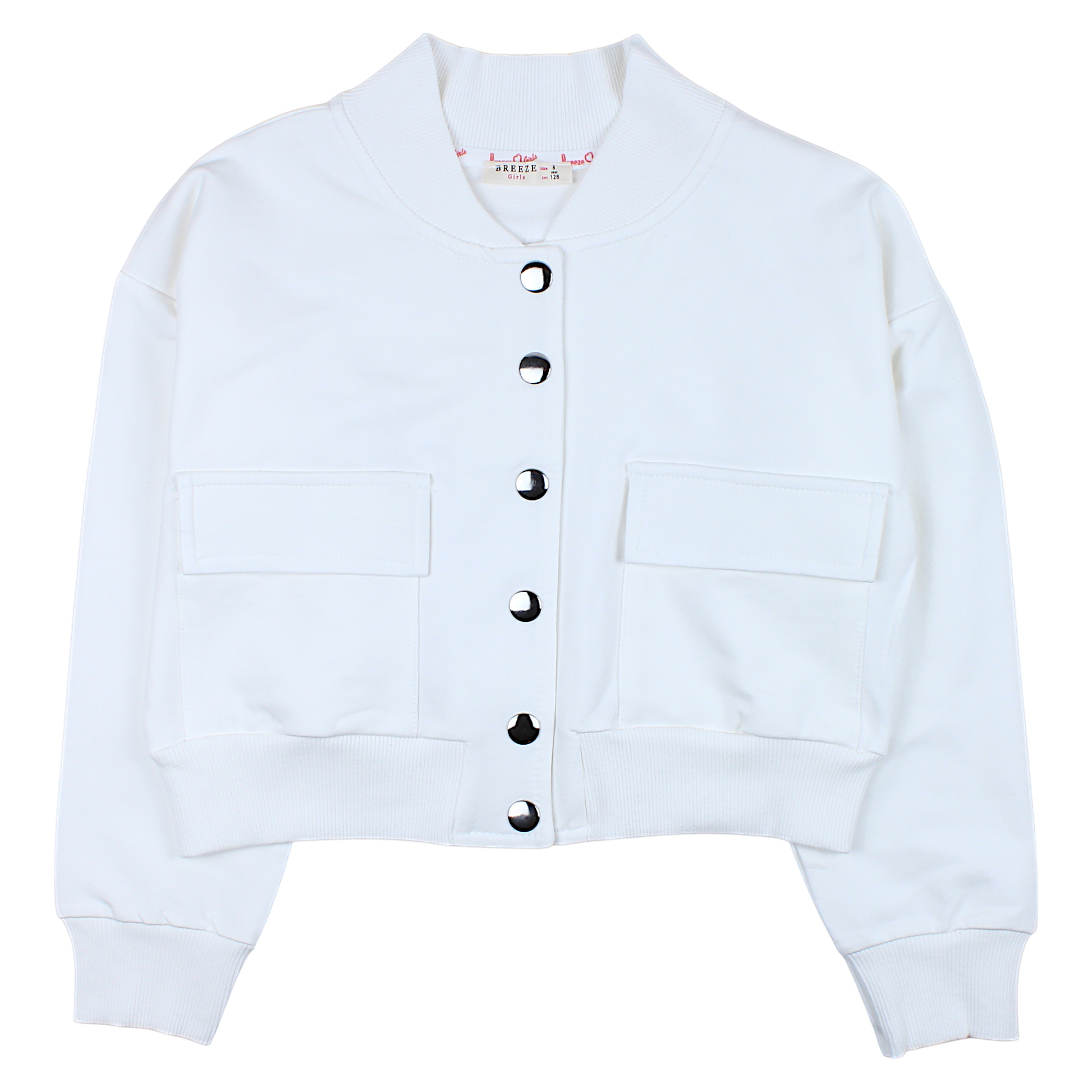 Diese Mädchen-Bomberjacke von Breeze ist die perfekte Wahl für Frühling und Sommer für jede junge Fashionista. Die Jacke ist in einem zarten Cremeton gehalten, der ihr ein leichtes und elegantes Tragegefühl verleiht. Die Vorderseite verfügt über einen durchgehenden Verschluss mit dekorativen Druckknöpfen , der das An- und Ausziehen erleichtert. Die zwei großen Pattentaschen , symmetrisch auf der rechten und linken Seite angeordnet, bieten nicht nur zusätzlichen Stauraum für Kleinigkeiten, sondern verleihen der Jacke auch Charakter.