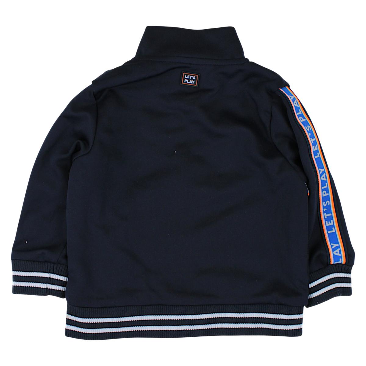 Wir bieten eine stylische blaue Jacke an, perfekt für kühlere Tage. Dieses Modell verfügt über einen Reißverschluss für mehr Komfort und zwei Seitentaschen , in denen Sie die kleinen Gegenstände Ihres Kindes verstauen können. Die Jacke ist mit bunten Streifen und einem Aufnäher verziert, was ihr ein attraktives Aussehen verleiht. Die Ärmel sind mit praktischen Bündchen für eine bessere Passform versehen.