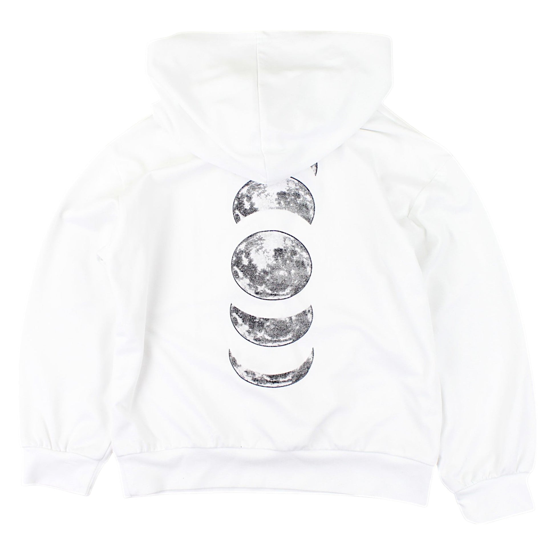 Dieser stylische weiße NASA-Hoodie ist die perfekte Wahl für kleine Weltraumfans. Das weiche Material bietet Tragekomfort und Bewegungsfreiheit. Ein NASA-Logo-Patch auf der Vorderseite und ein auffälliger Mondphasen- Print auf der Rückseite verleihen dem Hoodie einen einzigartigen Charakter. Lange Ärmel und elastische Bündchen und Saum sorgen für Wärme und Tragekomfort. Der Hoodie hat keine Taschen oder Verschlüsse, was sein minimalistisches Design unterstreicht. Perfekt für kühlere Tage im Frühling und Sommer .