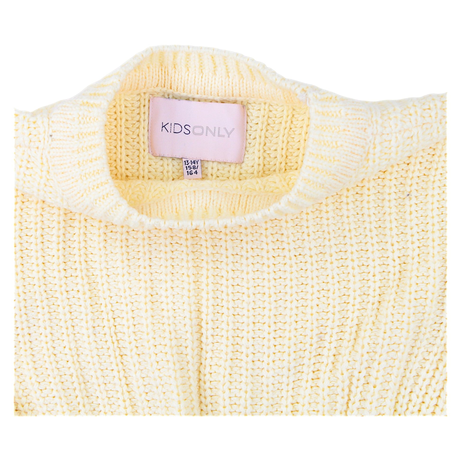 Ein stylisches Mädchen-Pullover-Sweatshirt von KIDS ONLY in zartem Gelb . Hergestellt aus dickem, gewebtem Stoff mit Rippenmuster bietet es Komfort und Wärme. Lange Ärmel und ein klassischer Rundhalsausschnitt sorgen für Eleganz und Komfort. Perfekt für Frühling und Sommer, für den Alltag und besondere Anlässe.