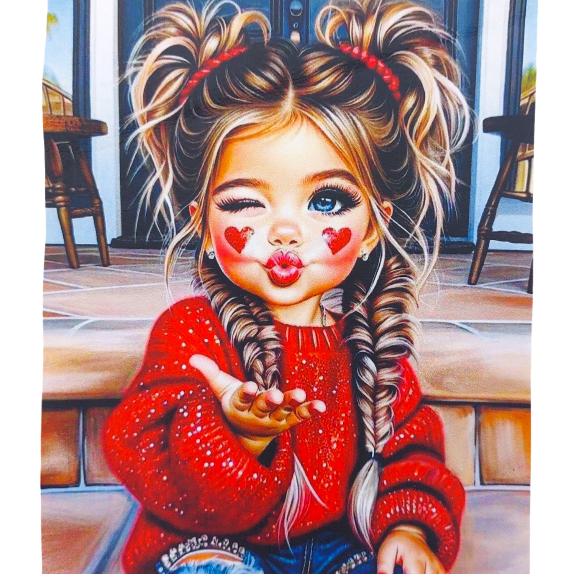 Eine stylische Langarmbluse für Mädchen, perfekt für die Herbst- und Wintersaison. Der einzigartige Print eines charmanten Mädchens mit Zöpfen verleiht ihr einen einzigartigen, modischen Touch. Hergestellt aus weicher, dehnbarer Baumwolle, hat sie weder Verschlüsse noch Taschen und sorgt so für ganztägigen Tragekomfort. Die lockere Passform und das schlichte Design ergänzen Alltagsoutfits perfekt. Die Cremefarbe ist vielseitig und passt zu verschiedenen Anlässen, während der Print einen Hauch von Originalität verleiht. Eine perfekte Wahl für kleine Mode- und Komfortliebhaber.