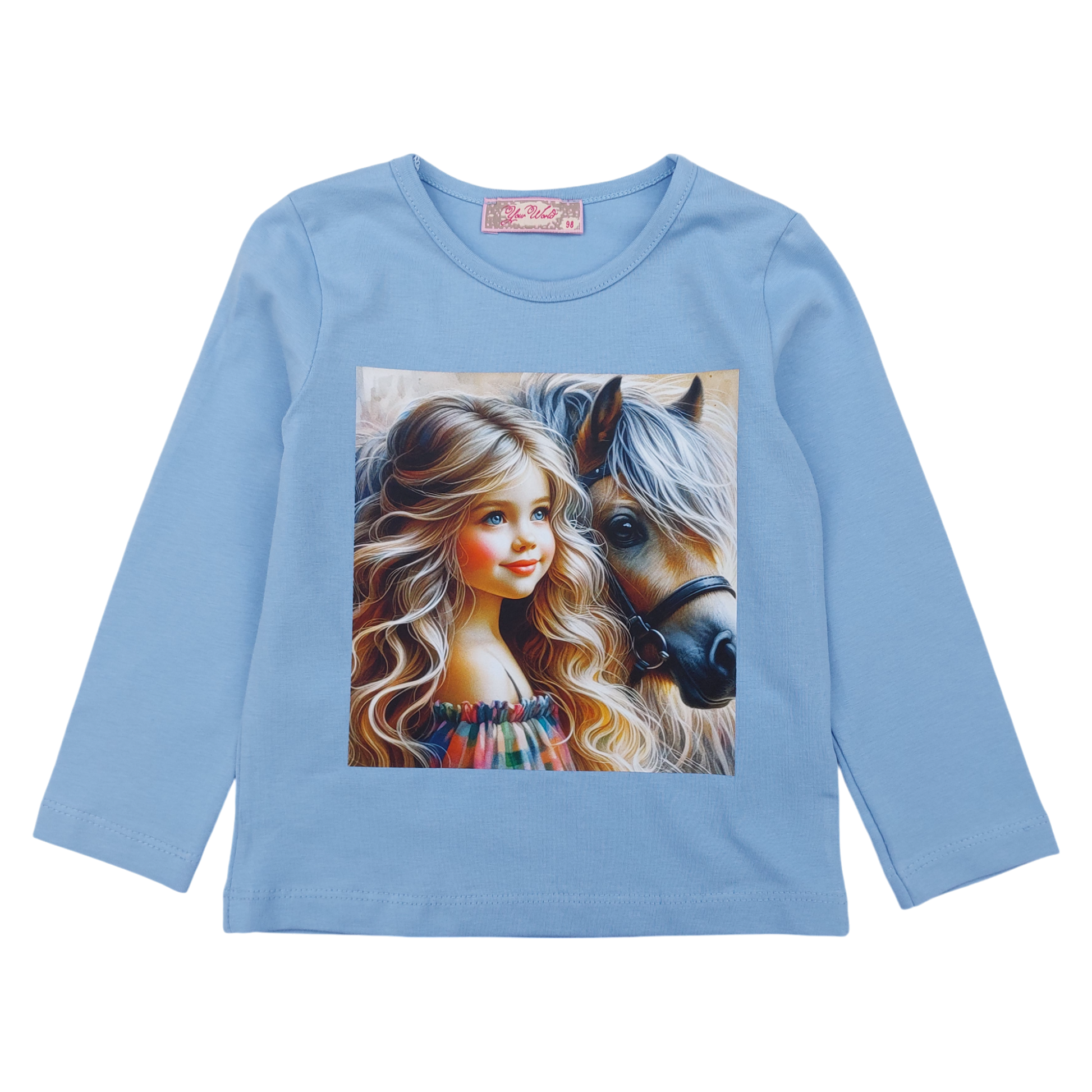 Baumwollbluse mit Pferd für Mädchen, blau Your Word 5462-191024-35
