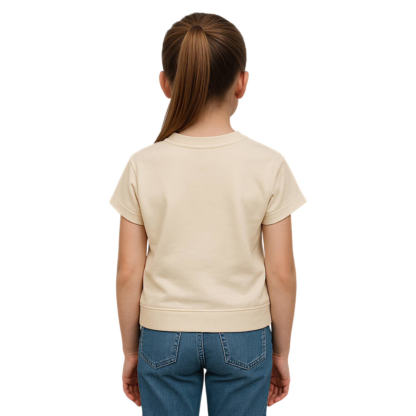 Beige Mädchenbluse mit Katzenmotiv Dresmoda 3421-30525-1