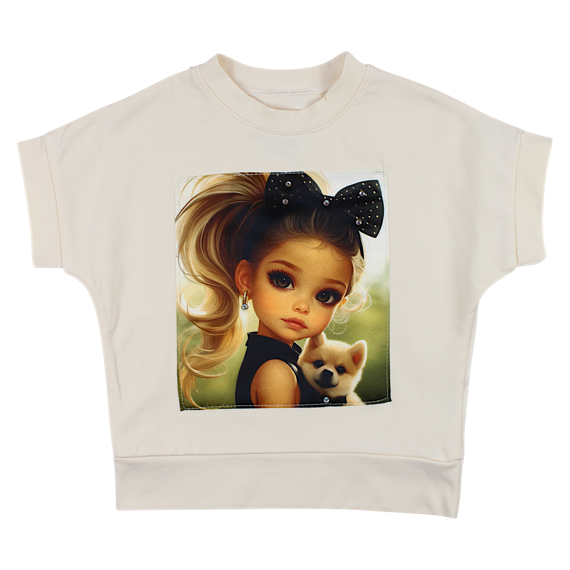 Diese wunderschöne cremefarbene Bluse von Guliwerkids für Mädchen ist perfekt für die Frühlings- und Sommersaison. Sie besticht durch einen charmanten, farbenfrohen Print auf der Vorderseite, der eine Figur mit Hund darstellt. Die Bluse hat kurze Ärmel und einen klassischen, offenen Schnitt für mehr Komfort. Sie eignet sich perfekt für den Alltag und ist ideal für Mädchen, die Wert auf Komfort und modisches Design legen.