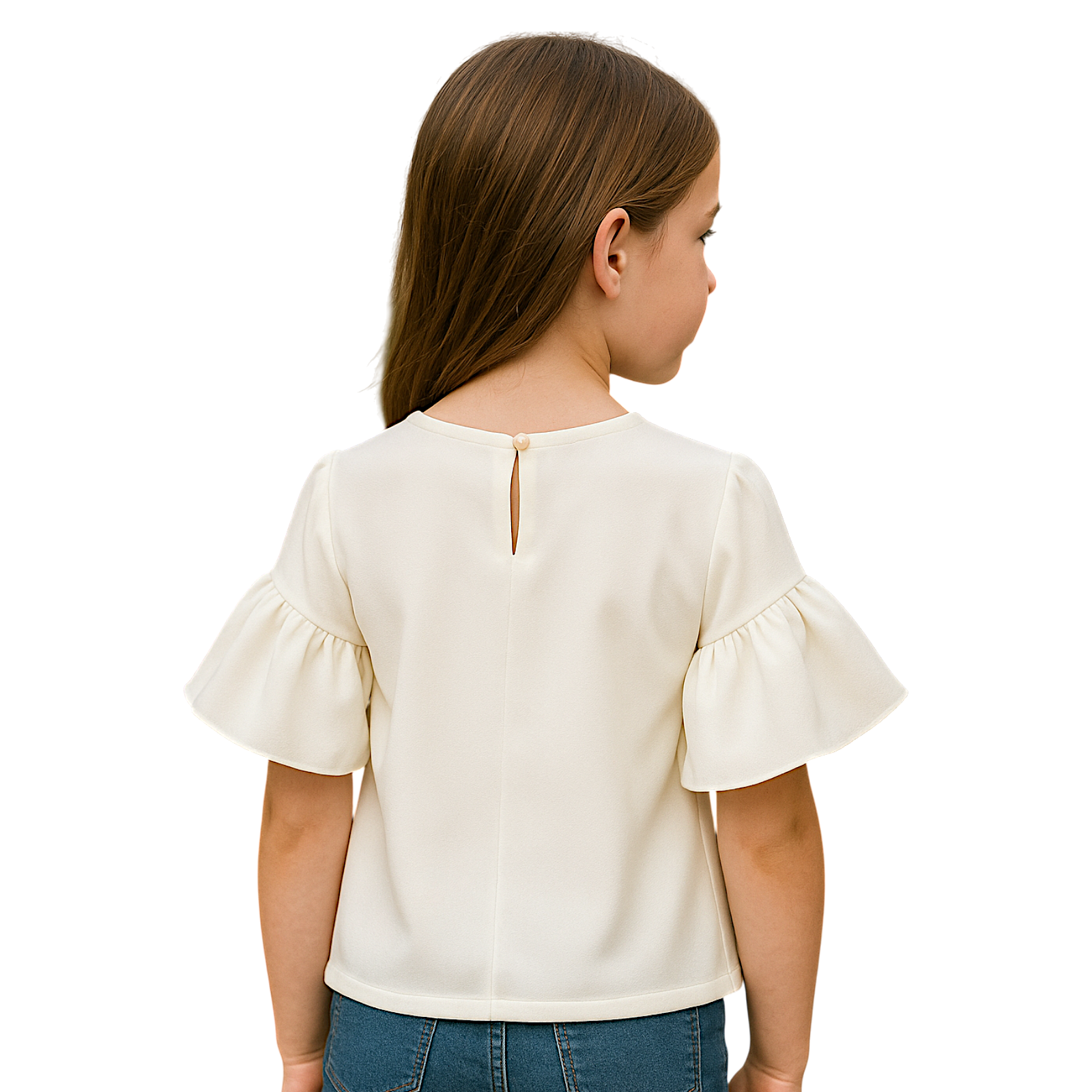 Diese elegante cremefarbene Bluse für Mädchen von Sugar ist die perfekte Kombination aus Stil und Komfort. Hergestellt aus hochwertigen Materialien, bietet sie Bewegungsfreiheit und ist angenehm zu tragen. Sie hat kurze Ärmel und einen dezenten Ausschnitt. Die glatte Textur des Stoffes unterstreicht ihre Eleganz, während die klassische Farbe sie zu einer vielseitigen Ergänzung für jede Kindergarderobe macht. Perfekt für besondere Anlässe und den Alltag. Die Elastizität des Stoffes sorgt für eine perfekte Passform.