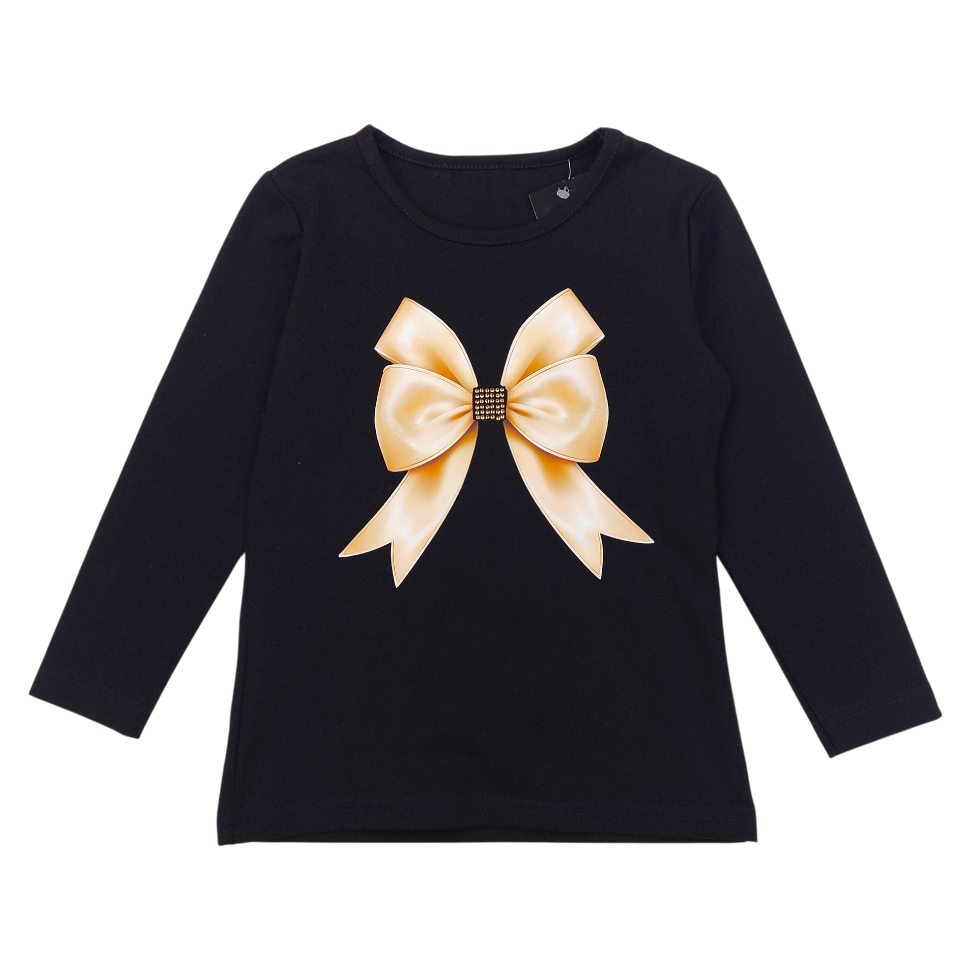 Die Mädchenbluse Milbo 133-151124 aus der Herbst-/Wintersaison präsentiert sich in elegantem Schwarz mit einer dekorativen Schleife auf der Vorderseite. Das langärmlige Modell aus dehnbarem Material sorgt für Komfort und Stil. Perfekt für besondere Anlässe und Alltagsoutfits.
