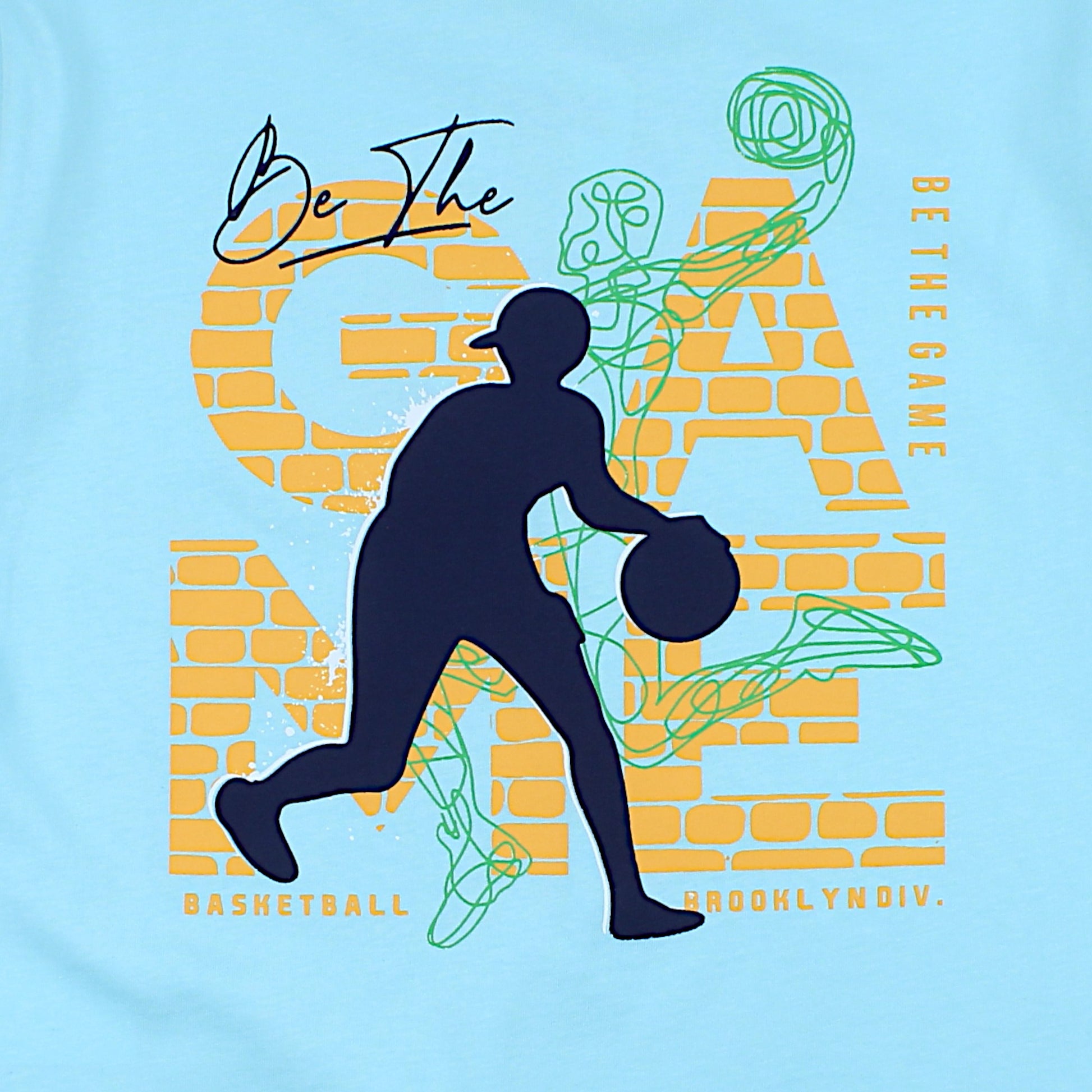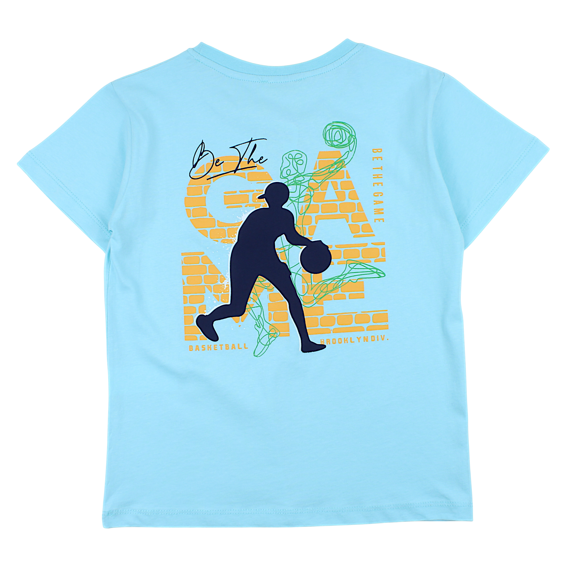 Jungen-T-Shirt mit Basketballspieler-Motiv in Türkis