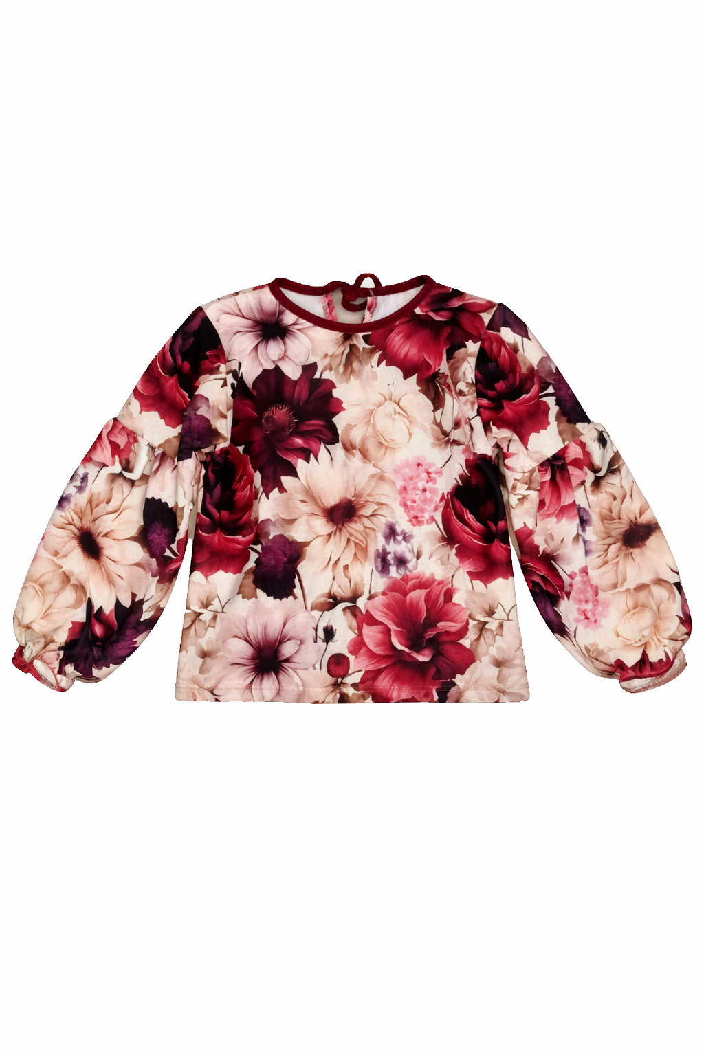 Dziewczęca bluzka z bufkami w kolorze bordowym