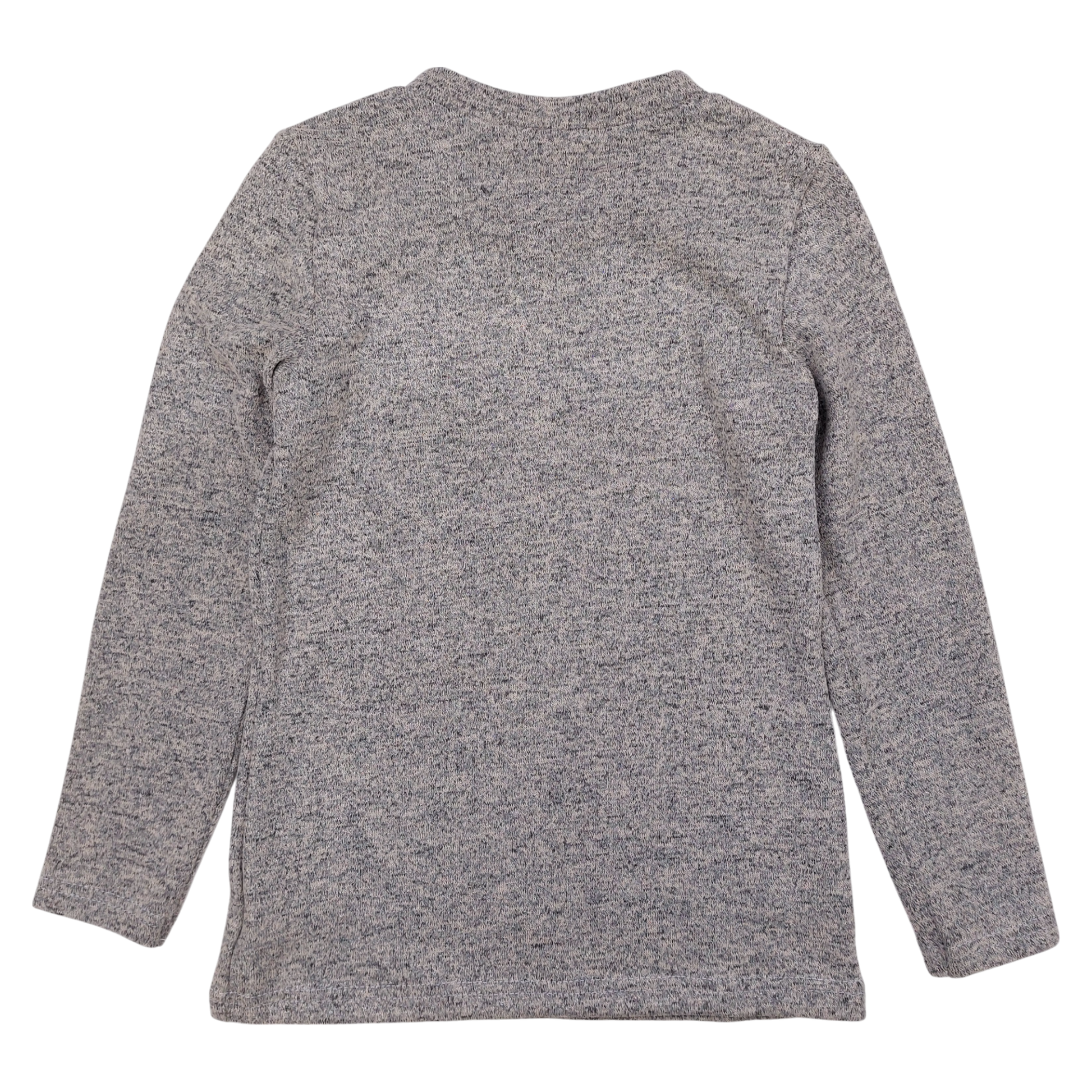 Diese elegante graue Bluse für Mädchen ist aus weicher Baumwolle mit pulloverähnlicher Textur gefertigt. Sie hat lange Ärmel und dekorative Knöpfe an den Schultern für einen Hauch von Chic. Perfekt für die Herbst- und Wintersaison.