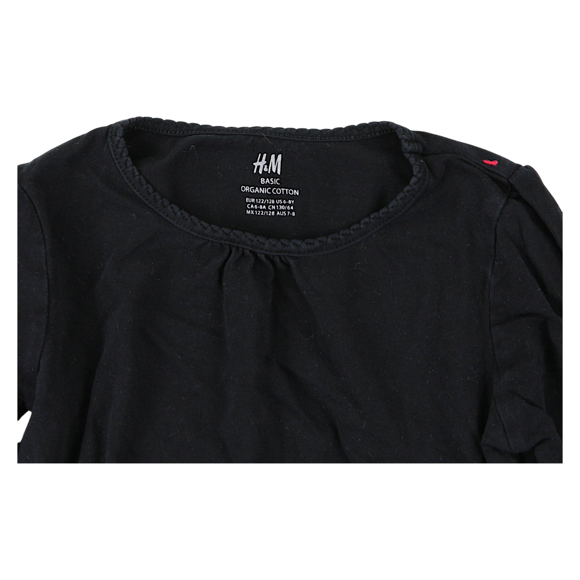 Diese Langarmbluse von H&M ist ein Klassiker für Mädchen und passt zu jedem Anlass. Die schwarze Farbe verleiht ihr einen eleganten und vielseitigen Look, der zu vielen Outfits passt. Hergestellt aus Bio-Baumwolle , liegt sie angenehm weich auf der Haut. Der runde Ausschnitt mit dezenter Paspelierung und die zarten Rüschen an den Schultern verleihen ihr einen mädchenhaften Touch. Perfekt für die Frühlings- und Sommersaison als Basisschicht unter einem Sweatshirt oder Pullover.