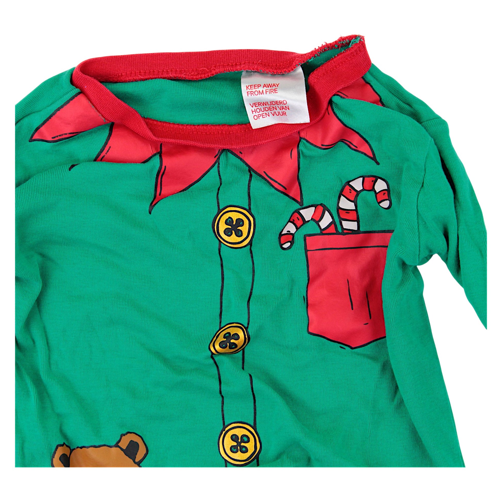 Eine lustige , langärmelige Bluse mit Elfenmotiv, perfekt für die Weihnachtszeit! Das leuchtende Grün in Kombination mit roten Details verleiht ihr ein einzigartiges, festliches Flair. Ein Knopfdruck, eine Süßigkeitentasche und ein Teddybär am Bund verleihen ihr zusätzlichen Charme. Elastische Bündchen an Ärmeln und Ausschnitt sorgen für Komfort. Da keine Taschen und Verschlüsse vorhanden sind, lässt sich die Bluse leicht über den Kopf ziehen. Perfekt für Weihnachtsfeiern und den Alltag während der Weihnachtszeit.
