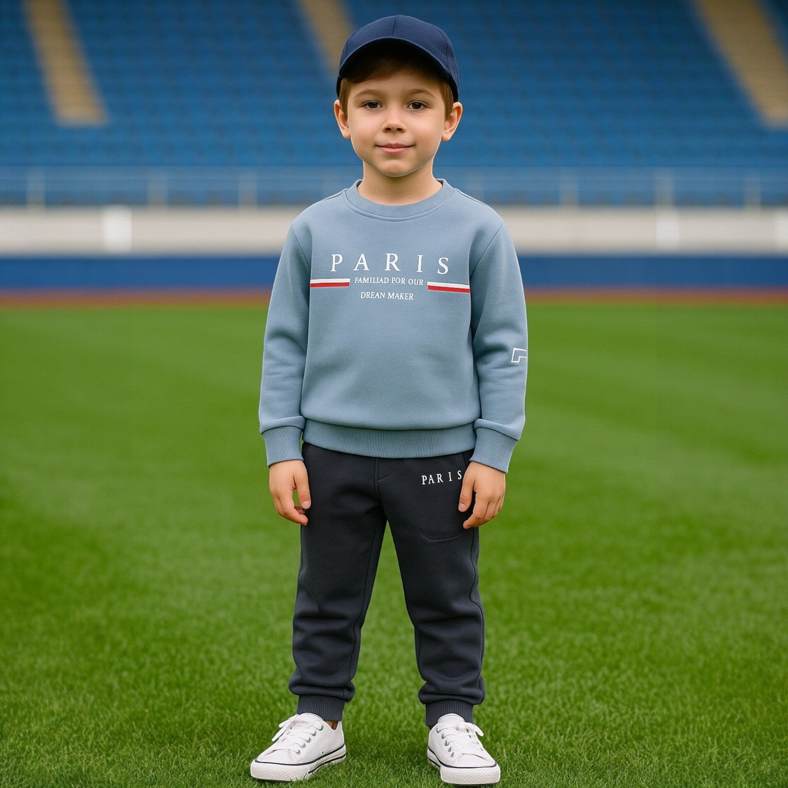 Dieser Trainingsanzug ist die perfekte Wahl für die Herbst-/Wintersaison, aber auch für kühlere Tage im Frühling und Sommer. Sein schlichtes, aber elegantes Design macht ihn sowohl zum Spielen im Freien als auch für Familienausflüge geeignet. Das Sweatshirt mit dem Aufdruck „PARIS“ verleiht ihm einen einzigartigen Stil, den jeder kleine Trendsetter zu schätzen weiß.