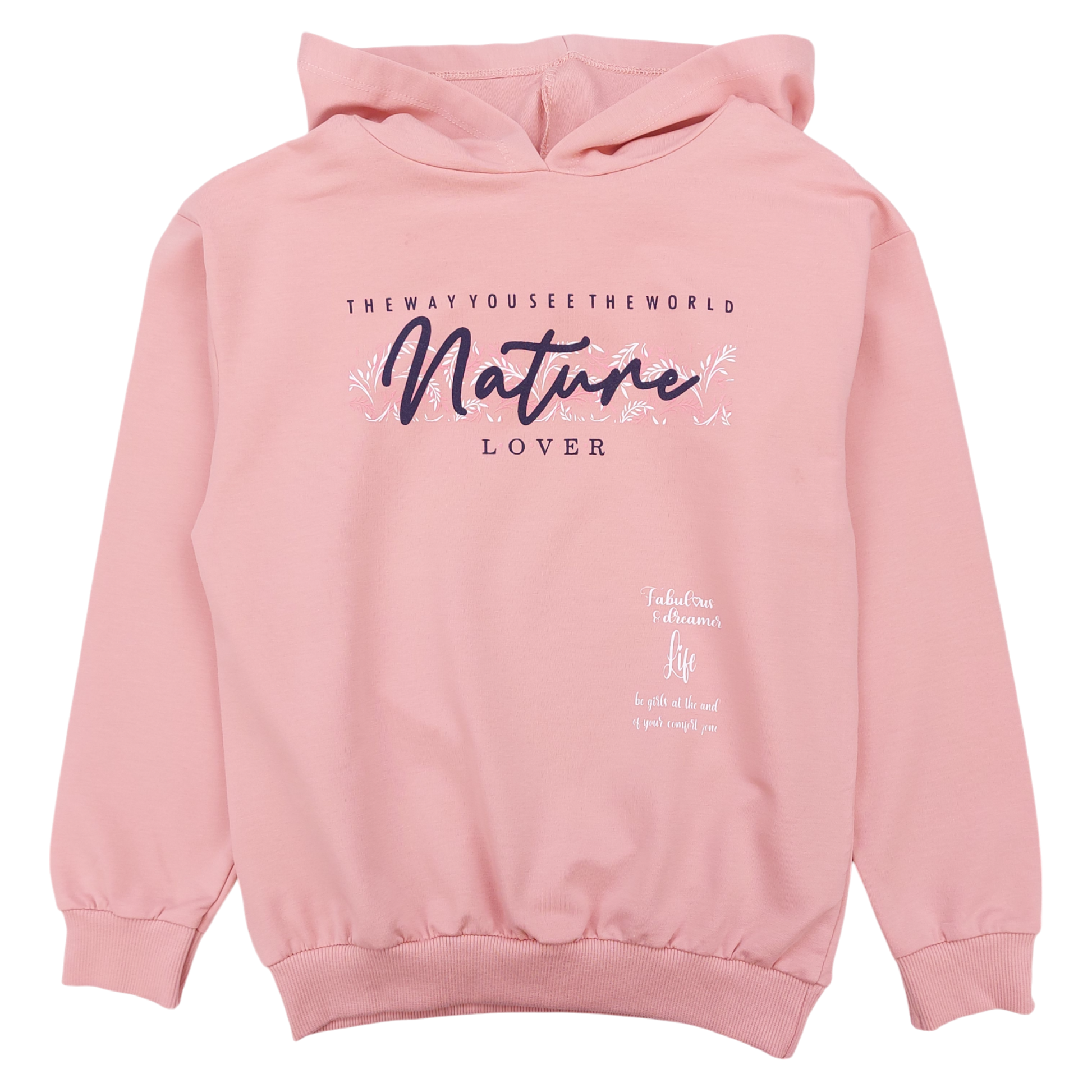 - Ein pinkfarbener Hoodie – perfekt für kühlere Tage. Der einzigartige „Nature Lover“-Print unterstreicht die Liebe zur Natur, während ein zusätzlicher dezenter Schriftzug den modischen Feinschliff verleiht. Elastische Bündchen an Saum und Ärmeln sorgen für Tragekomfort und Schutz vor Kälte.