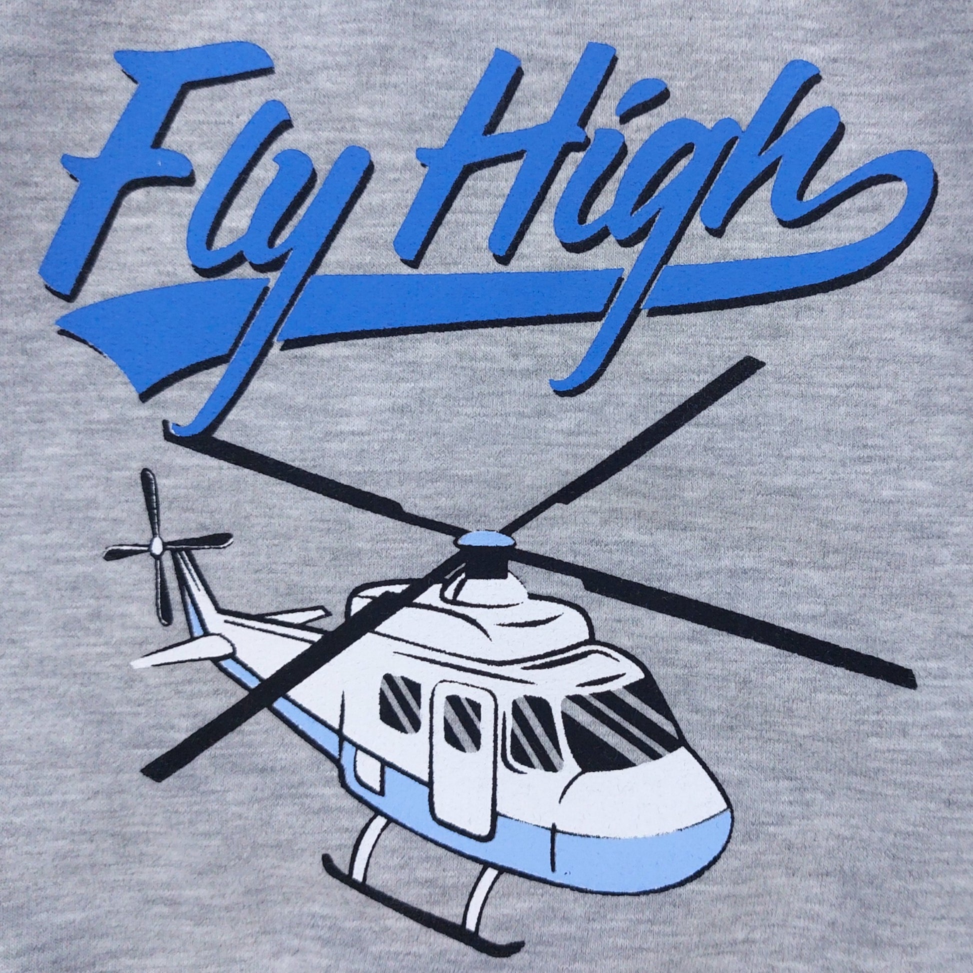 Mit einer attraktiven Helikoptergrafik und dem Slogan „Fly High“ zieht dieses Sweatshirt garantiert die Aufmerksamkeit junger Abenteurer auf sich. Es ist perfekt für Jungen, die vom Reisen in die Lüfte träumen, und das Helikoptermotiv verleiht dem Ganzen eine lustige und inspirierende Note. Das Sweatshirt verfügt über praktische Schulterverschlüsse für einfaches An- und Ausziehen.