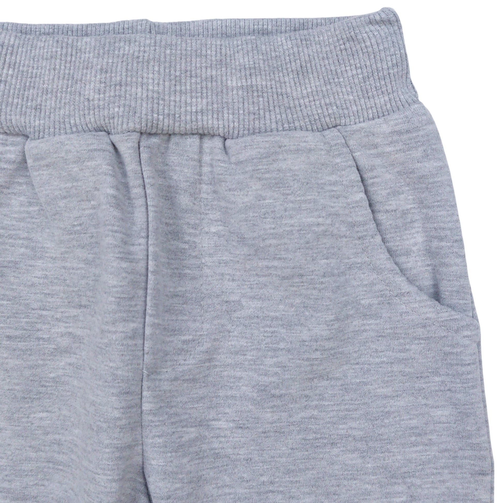 Hosen mit elastischem Bund und Taschen bieten Bewegungsfreiheit und ganztägigen Tragekomfort. Dank des dehnbaren Materials mit Elasthan-Zusatz passt sich die Hose perfekt dem Körper an und ermöglicht so uneingeschränkte Bewegungsfreiheit beim Spielen, Spazierengehen oder anderen Aktivitäten. Graue Farbe Der Trainingsanzug verleiht ihm einen universellen Charakter, dank dem das Set perfekt zu anderen Kleidungsstücken passt.