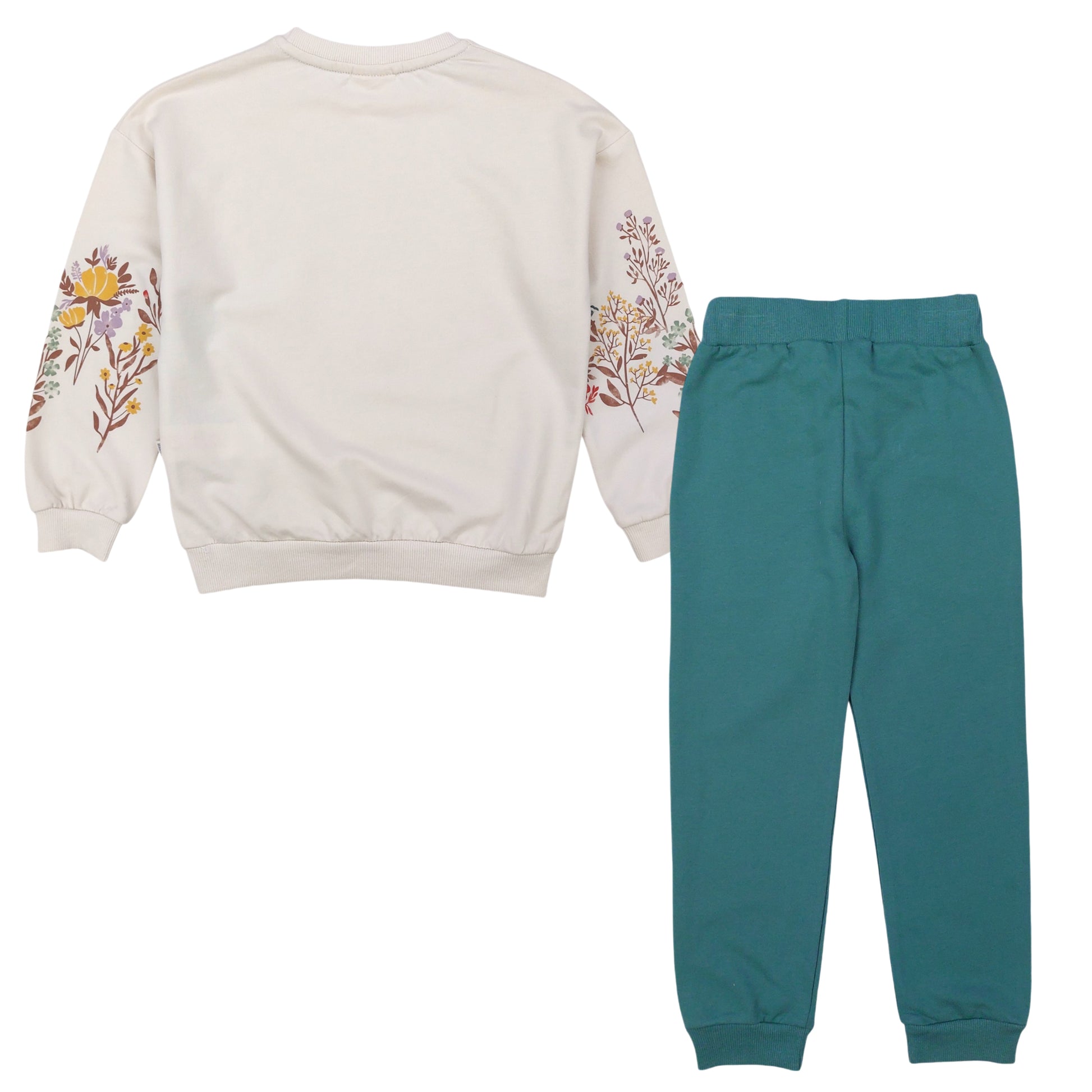 Mädchen-Trainingsanzug mit Blumenmotiv, Beige und Grün