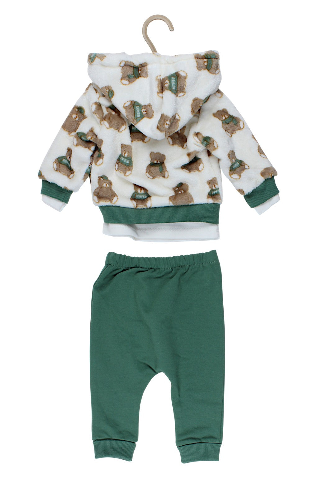 Wir präsentieren das 3-teilige Teddybär-Set für Jungen in elegantem Grün – perfekt für kühlere Tage. Dieses Set der renommierten Marke Pakel besteht aus drei Teilen, die sich vielseitig kombinieren lassen. Jedes Teil ist aus hochwertigem, weichem und angenehmem Material gefertigt und bietet so maximalen Tragekomfort.