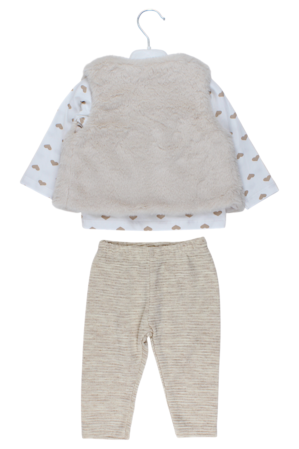3-teiliges Mädchen-Set mit beigefarbenem Herz