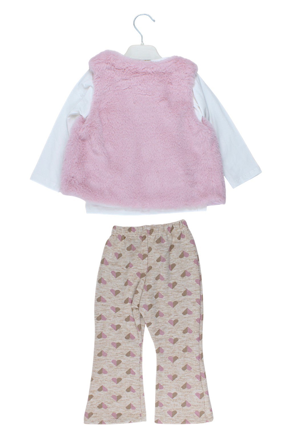 3-teiliges Set mit Weste, mädchenhaftes Rosa, Babyrose 7844-241025