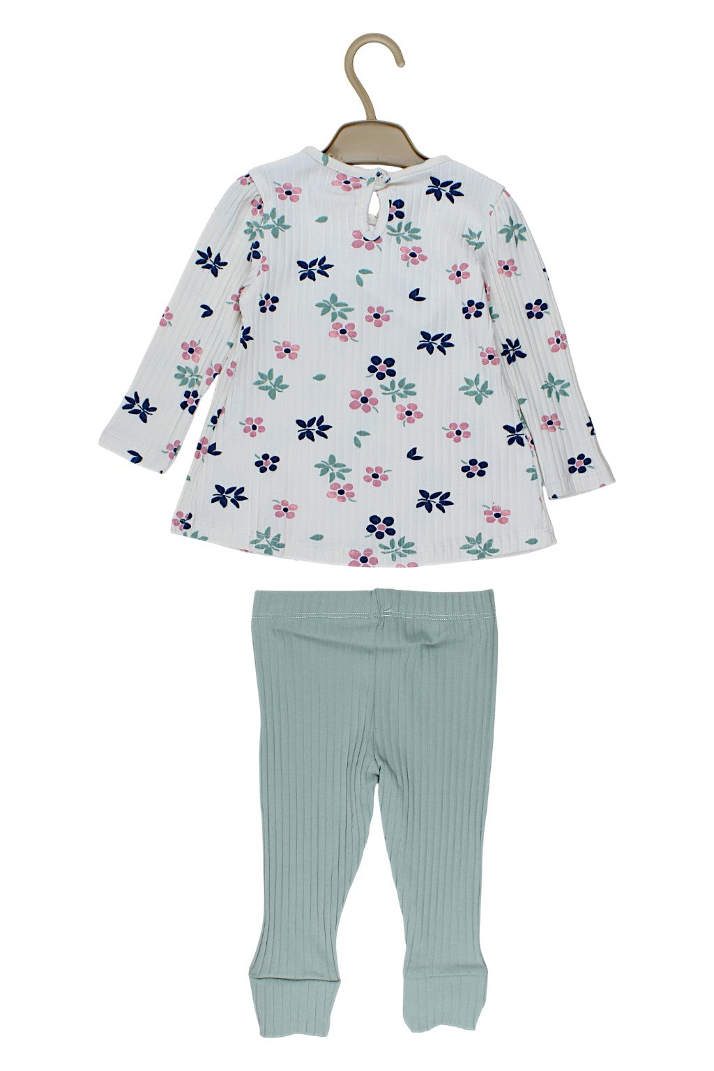 Mädchen-Set aus cremefarbener Baumwolle mit Blumenmuster