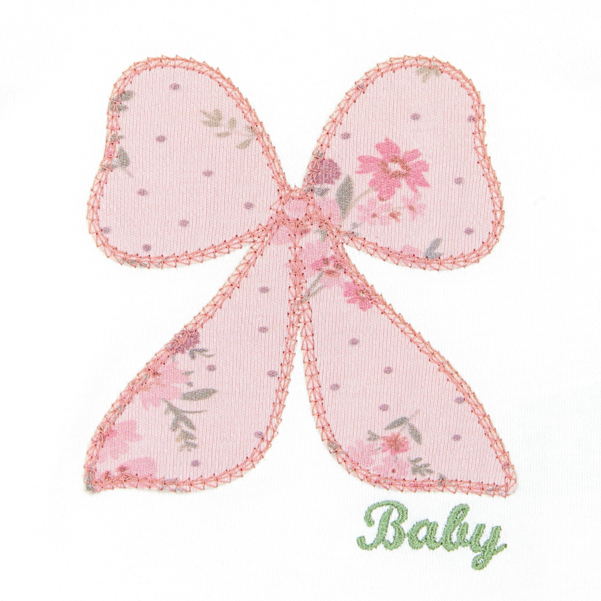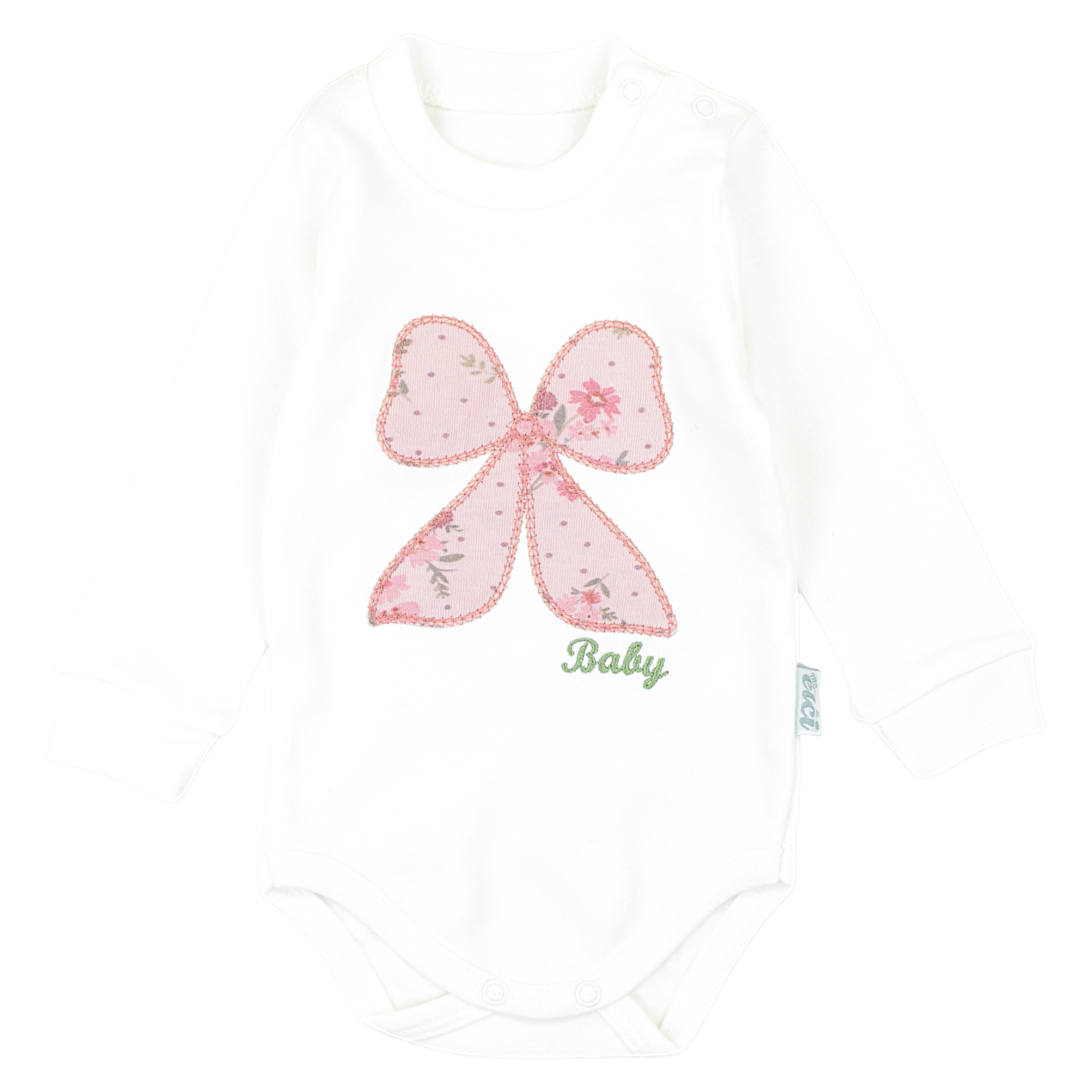 Präsentiert Süßes Schleifen-Kinderset ist das perfekte Angebot für Frühlingsgarderobe kleine Prinzessin. Das Set besteht aus weißer Body mit langen Ärmeln , die an kälteren Tagen für Wärme sorgt. Der Body ziert zarte Stickerei in Form Bögen und die Aufschrift „Baby“ in grüne Farbe , das jedem Styling Charme verleiht.