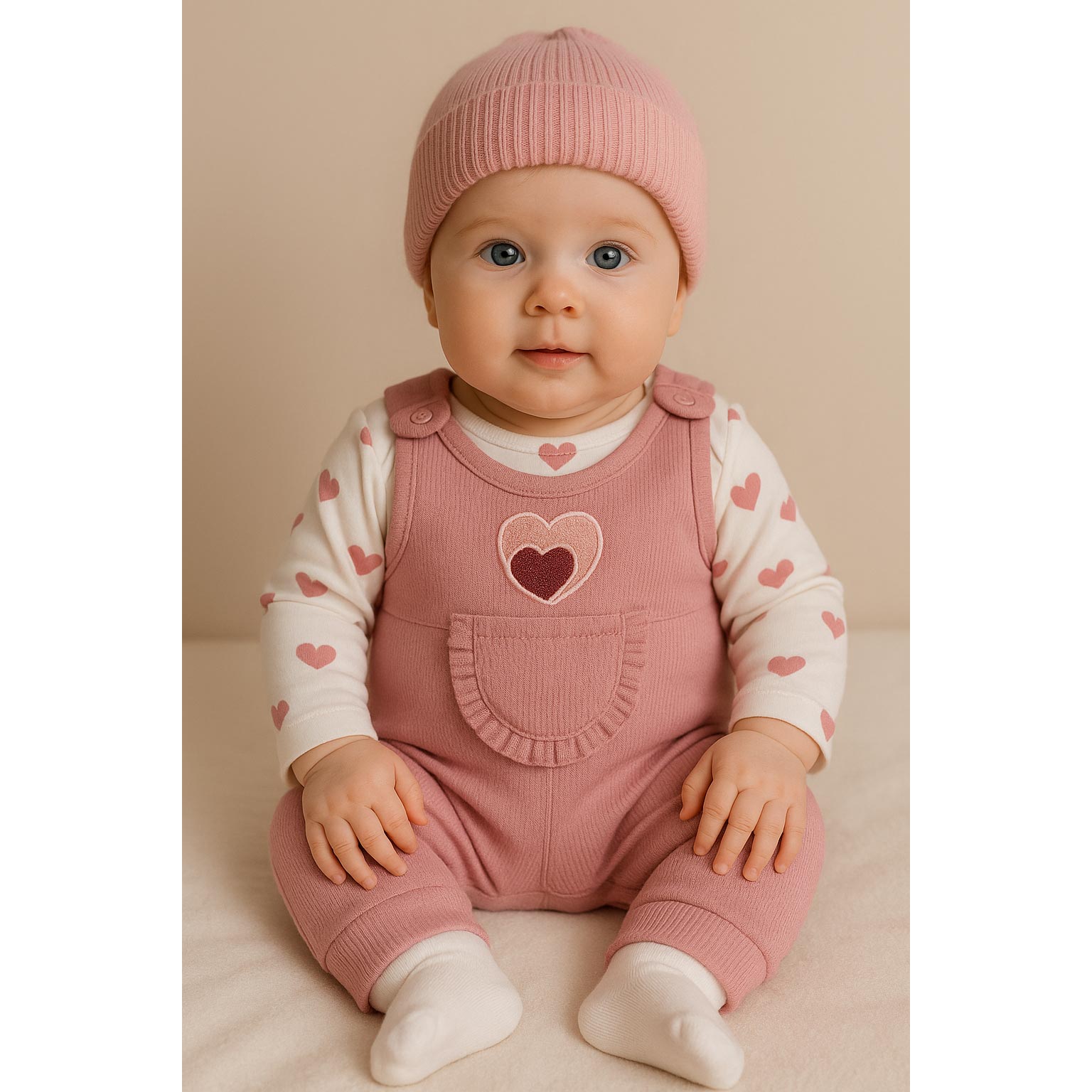 Ein bezauberndes Set für Mädchen bestehend aus Body, Shorts und Socken in zartem Rosa . Der Body verfügt über einen praktischen Druckknopfverschluss für einfaches Wechseln. Die Shorts haben einen elastischen Bund für mehr Komfort. Dieses Set ist perfekt für die Frühlings- und Sommersaison und besteht aus weicher, hautfreundlicher Baumwolle. Ein dezentes Muster verleiht Charme und Stil. Die Socken sind farblich abgestimmt und garantieren höchsten Tragekomfort für kleine Füße. Dieses stilvolle Set eignet sich sowohl für den Alltag als auch für besondere Anlässe.