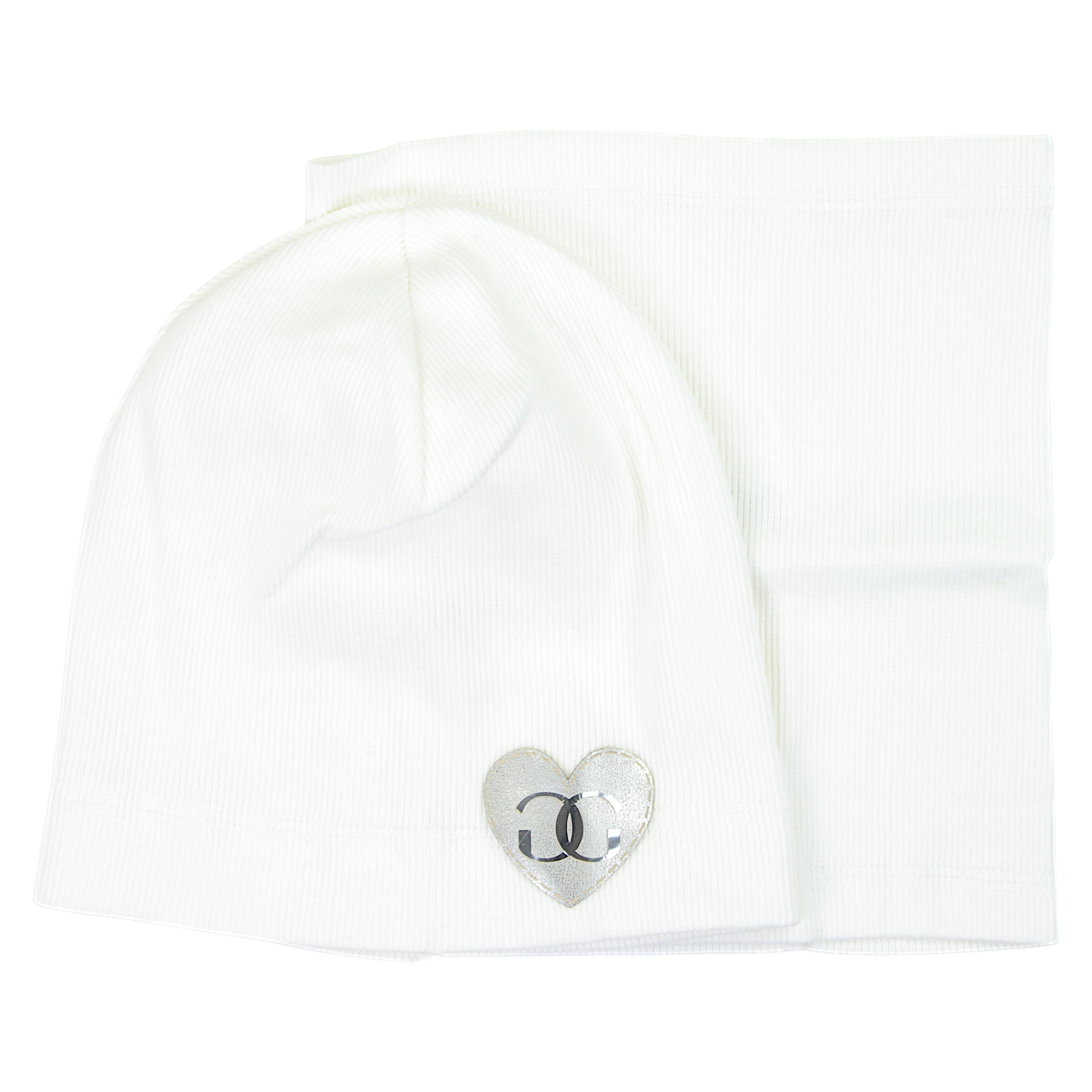 Ein stilvolles Set aus Mütze und Schal für Mädchen , perfekt für Frühlings- und Sommertage . Hergestellt aus weicher Baumwolle mit Elasthananteil sorgt es für Tragekomfort und eine perfekte Passform. Die zarte Cremefarbe passt zu vielen Stilen, und der dezente herzförmige Aufnäher verleiht ihm Charme. Das dehnbare Material garantiert Tragekomfort und die nahtlose Verarbeitung schützt die zarte Babyhaut vor Reizungen.