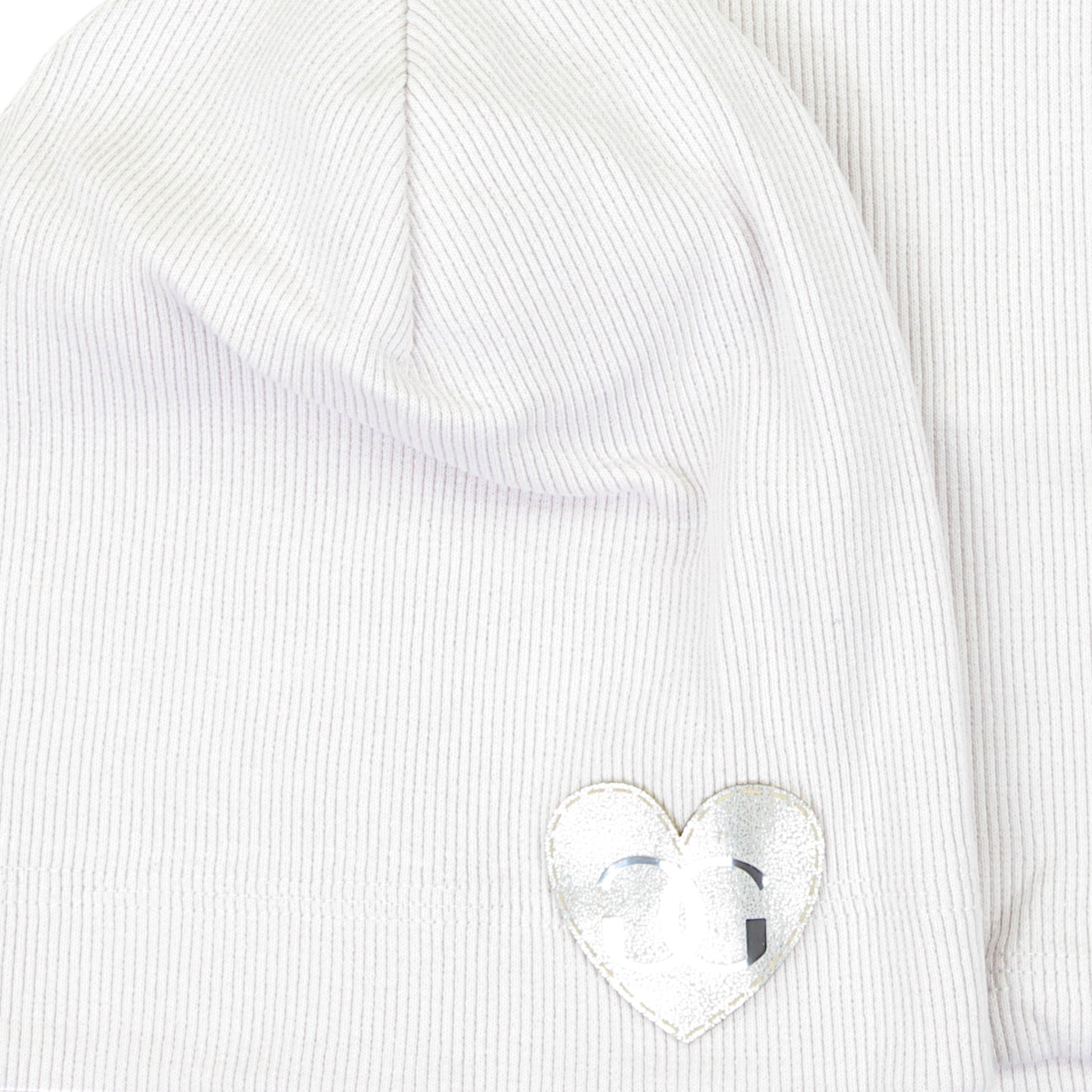 Mädchenhut Es hat ein klassisches, leicht verlängertes Design, das gut auf dem Kopf sitzt, ohne zu drücken. Dank des flexiblen Materials , passt sich der Kopfform an, was gewährleistet angenehm zu tragen den ganzen Tag . Dekorativer herzförmiger Aufnäher mit schimmerndem Effekt verleiht Charme und dezenten Glanz.