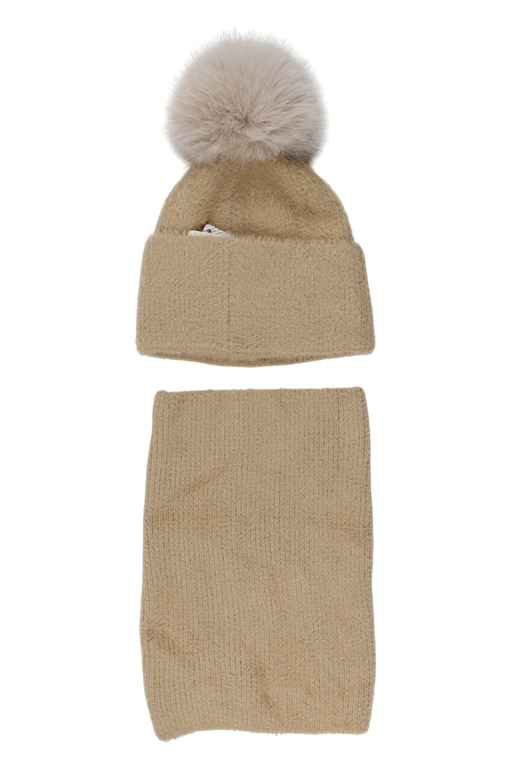 Beiges Hut- und Schal-Set für Mädchen, Ambra