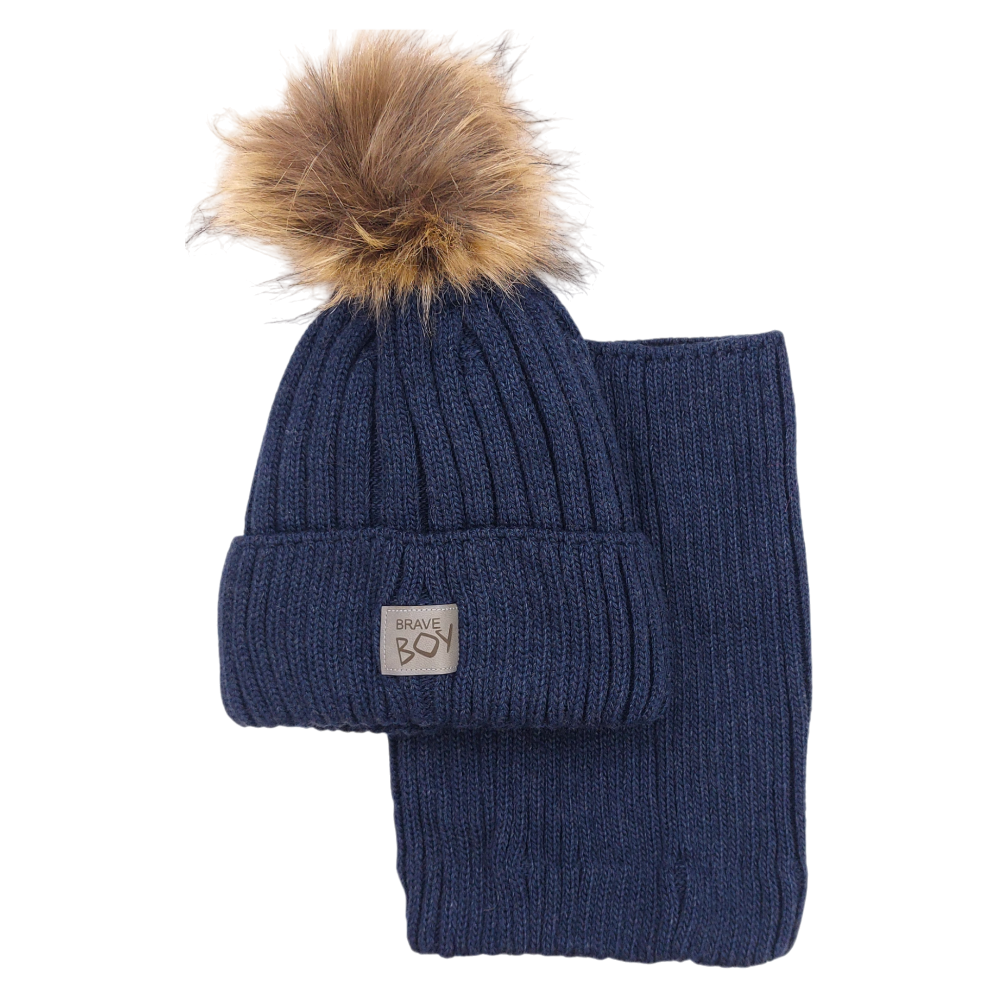 Einzigartiges Design, das begeistert: Dieses dunkelblaue Set verleiht jedem Outfit Charakter. Dank des auffälligen Kunstpelzbommels sieht die Mütze unglaublich modisch und stylisch aus. Der dezente „Brave Boy“-Schriftzug auf der Vorderseite unterstreicht zusätzlich, dass das Set für Jungen gedacht ist, die Wert auf originellen Stil legen.