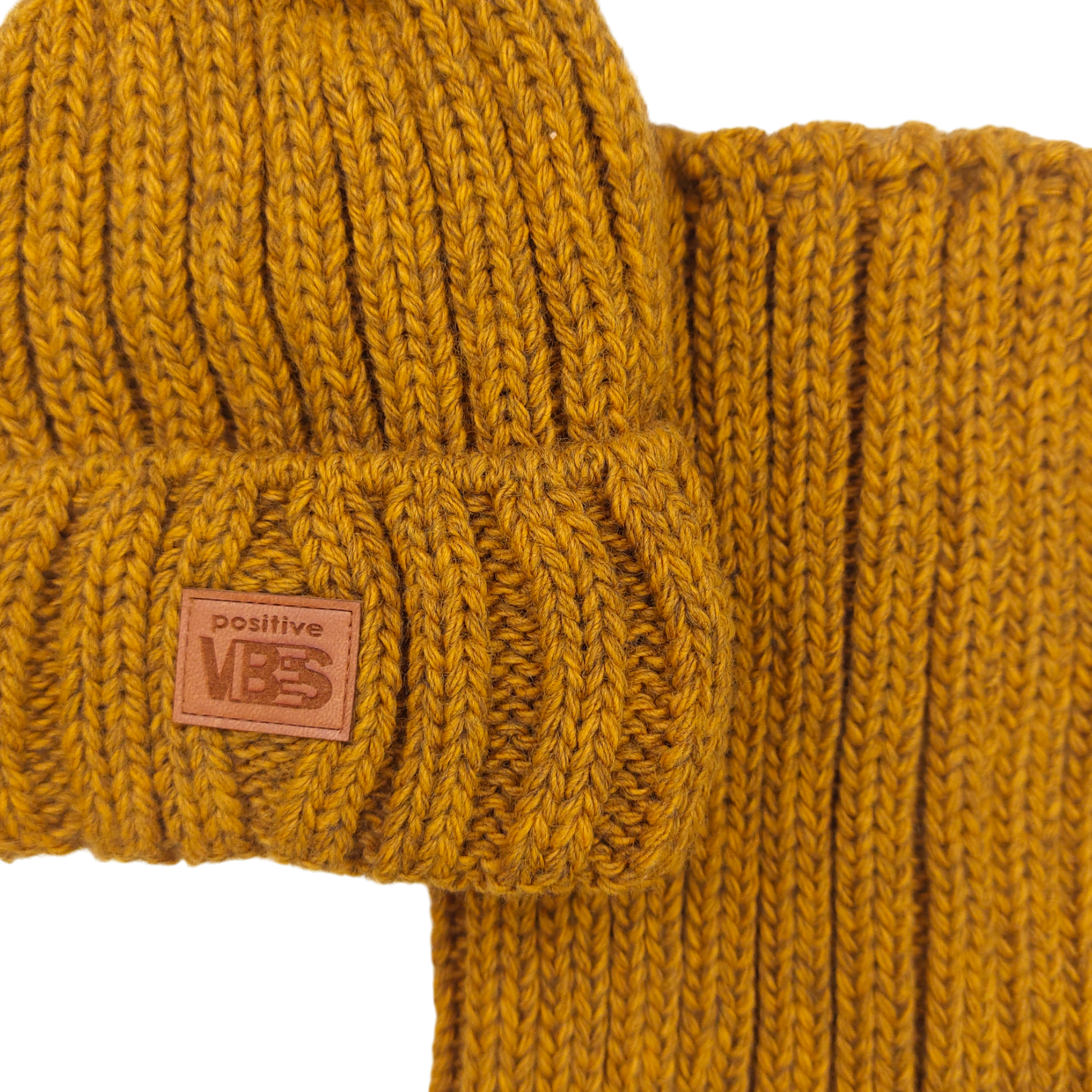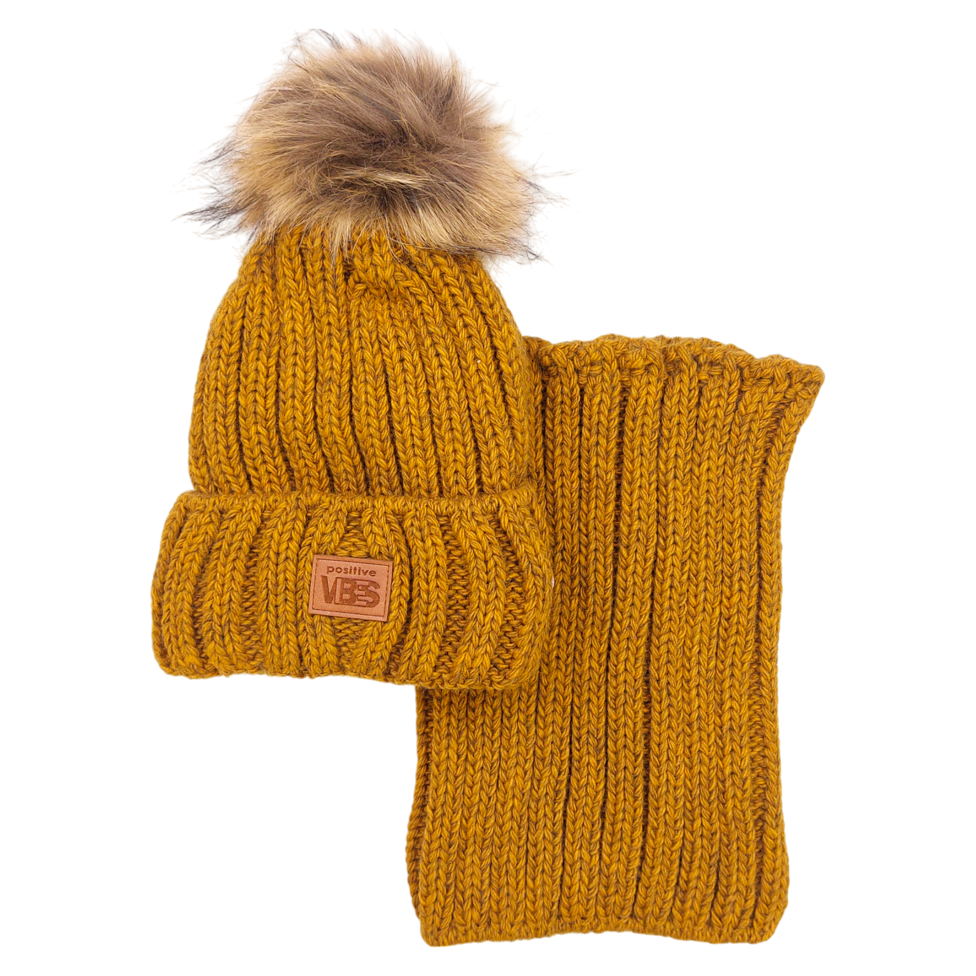 Senfgelbe Jungenmütze mit Bommel und Schal-Set Agbo K-41-241024-60