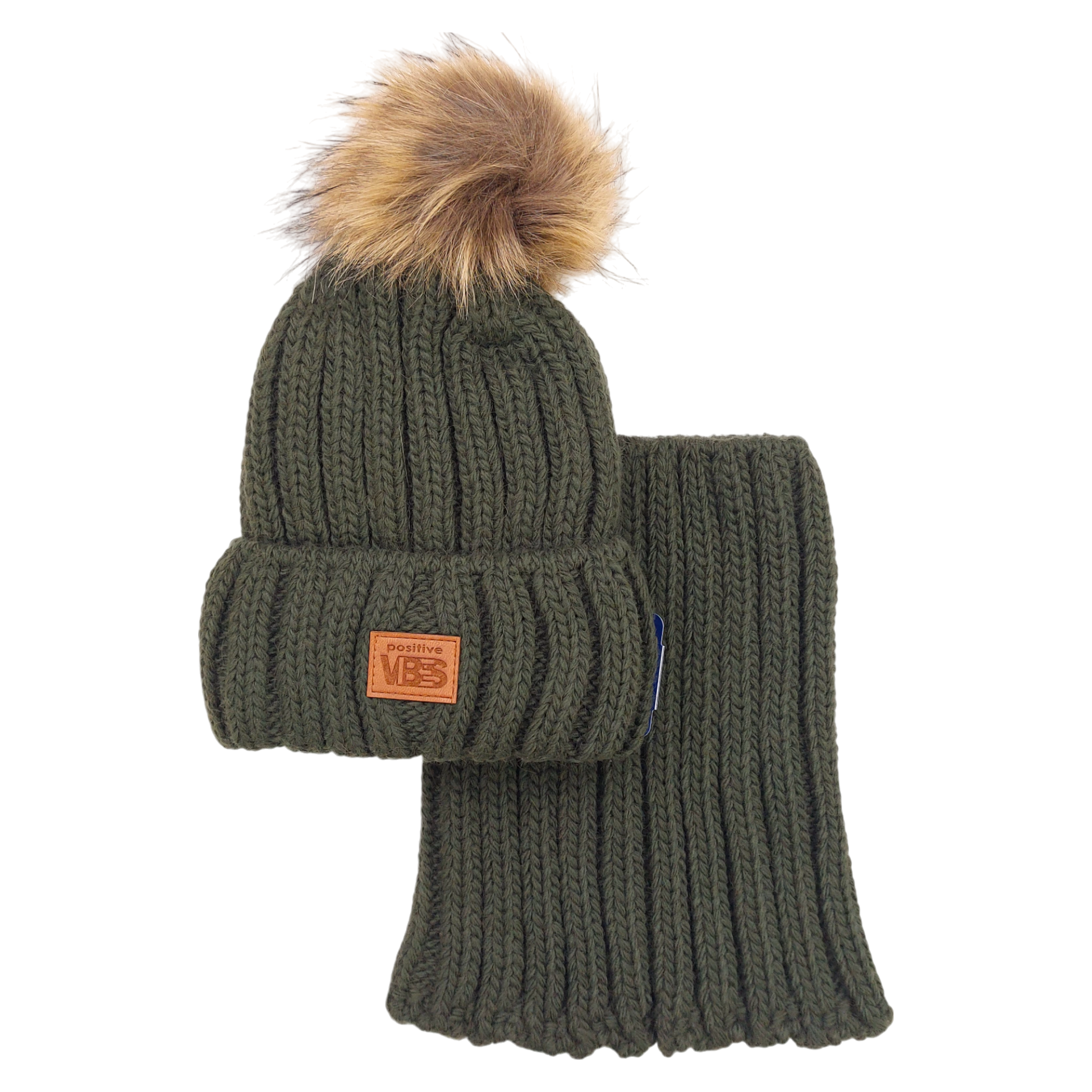 Set aus Mütze mit Schal und Bommel für Jungen, grün, Agbo K-41-241024-48