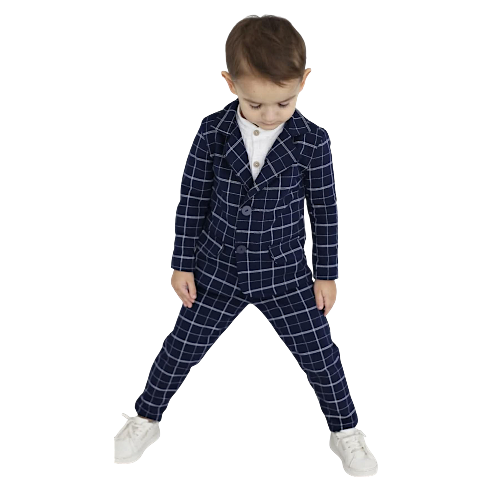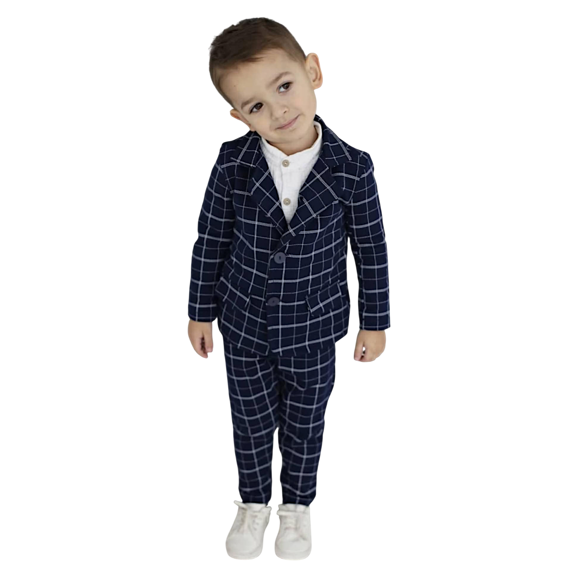 Ein stilvolles Anzugset für Jungen in elegantem Marineblau , perfekt für formelle Anlässe. Hergestellt aus hochwertigen Stoffen , bietet es Komfort und Eleganz. Das Jackett verfügt über einen klassischen Knopfverschluss und Taschen für zusätzliche Funktionalität. Die Hose ist tailliert und hat einen verstellbaren Bund für eine bessere Passform. Das Ganze ergibt ein kompaktes zweiteiliges Set , perfekt für formelle Anlässe und besondere Anlässe.