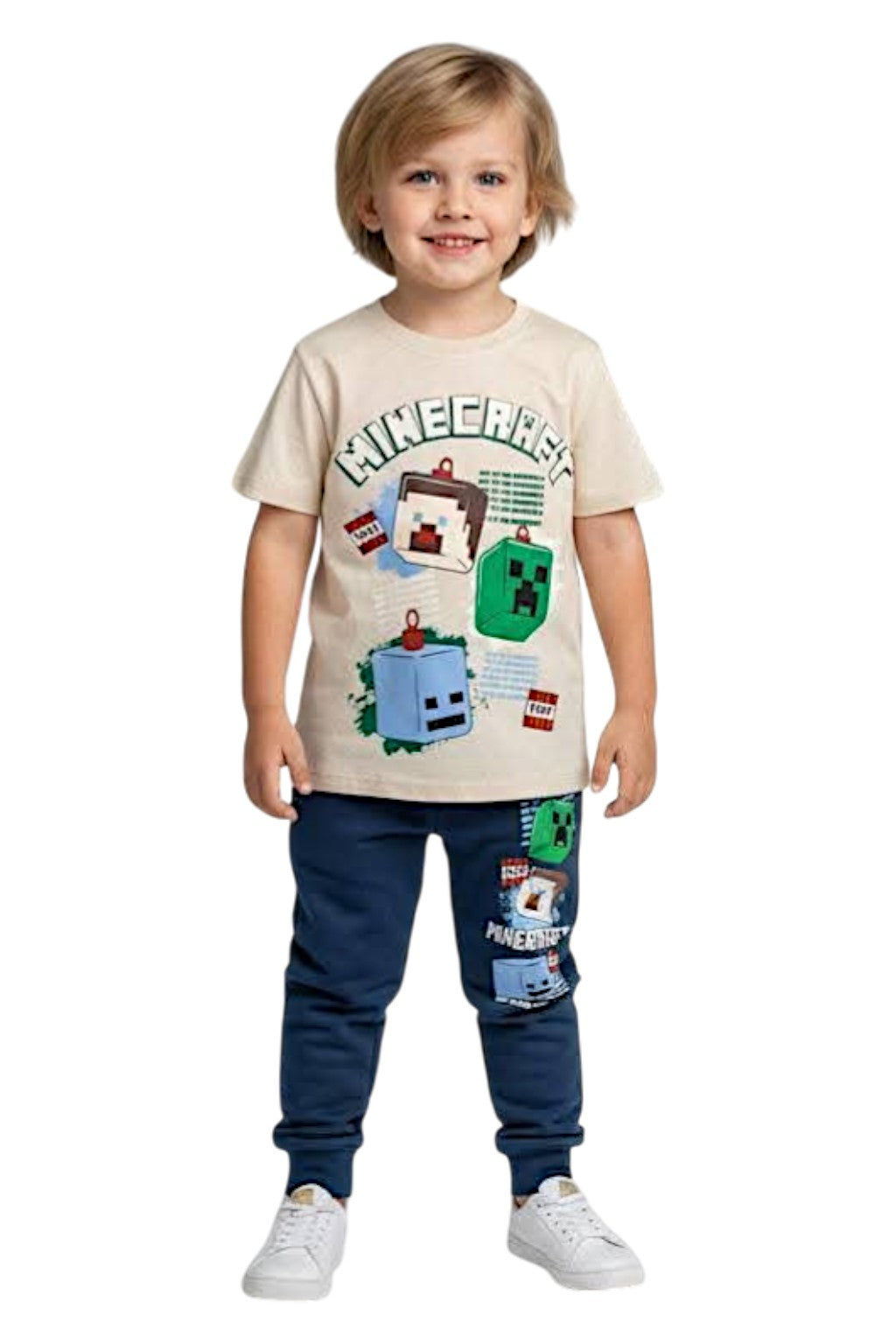 Prezentujemy chłopięcy komplet Minecraft w kolorze niebieskim od marki SerenadKids. Zestaw składa się z koszulki i spodni, idealnych na sezon wiosna-lato. Koszulka posiada krótki rękaw i jest ozdobiona motywem z popularnej gry Minecraft. Spodnie mają elastyczną talię, co zapewnia komfort noszenia. Całość wykonana jest z miękkiej i przewiewnej bawełny, co gwarantuje wygodę podczas zabawy. To doskonały wybór dla każdego małego fana Minecrafta.