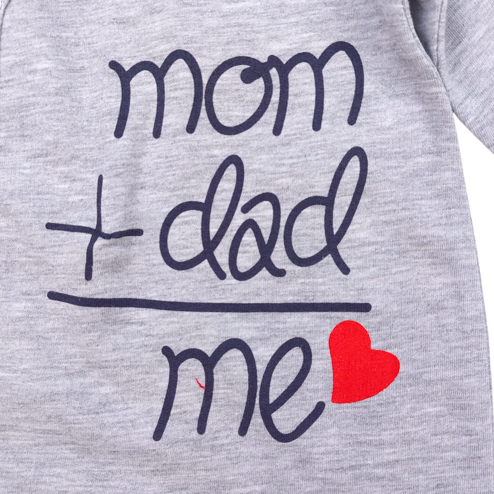 Dieses bezaubernde Mädchenset besteht aus einem aschgrauen Strampler und einer roten Mütze . Der Strampler ist mit dem Aufdruck „Mama + Papa = ich“ und einem roten Herz versehen, was ihm einen besonderen Charme verleiht. Der Druckknopfverschluss erleichtert das Wickeln und das weiche Material sorgt für den Tragekomfort des Babys.