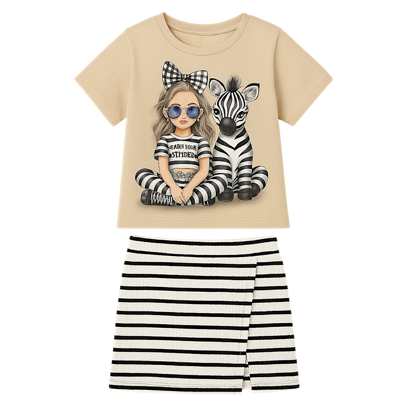 Beiges Zebra-Set aus Rock und Shorts für Mädchen, Pamtime 3424-30525-1