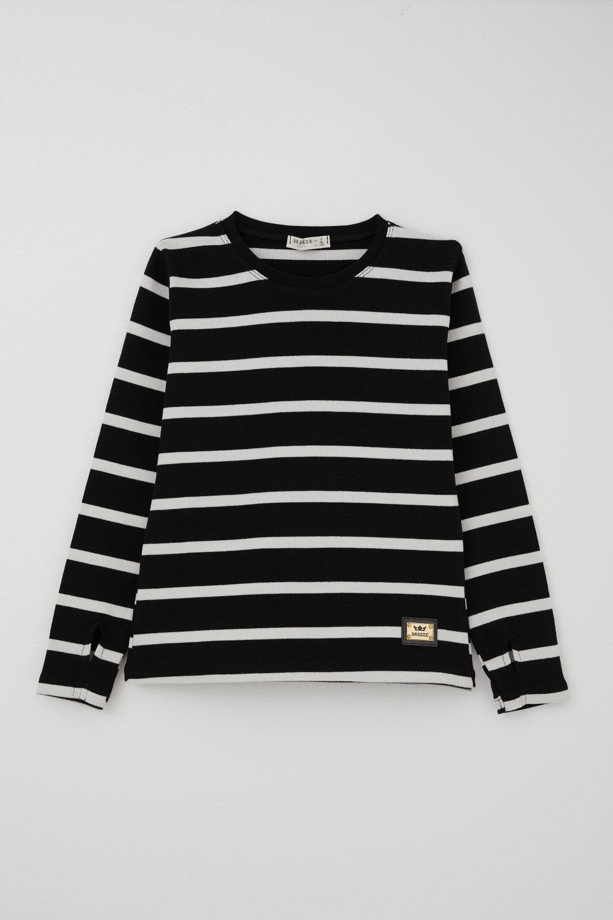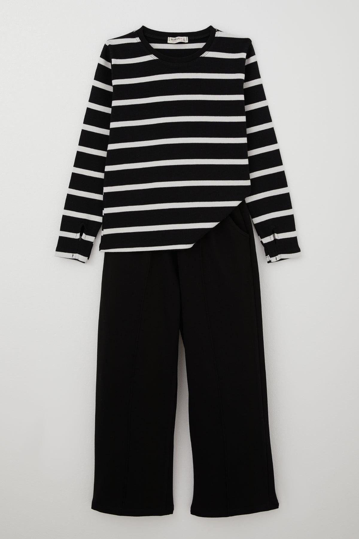Dziewczęcy komplet szwedy w paski czarny Breeze