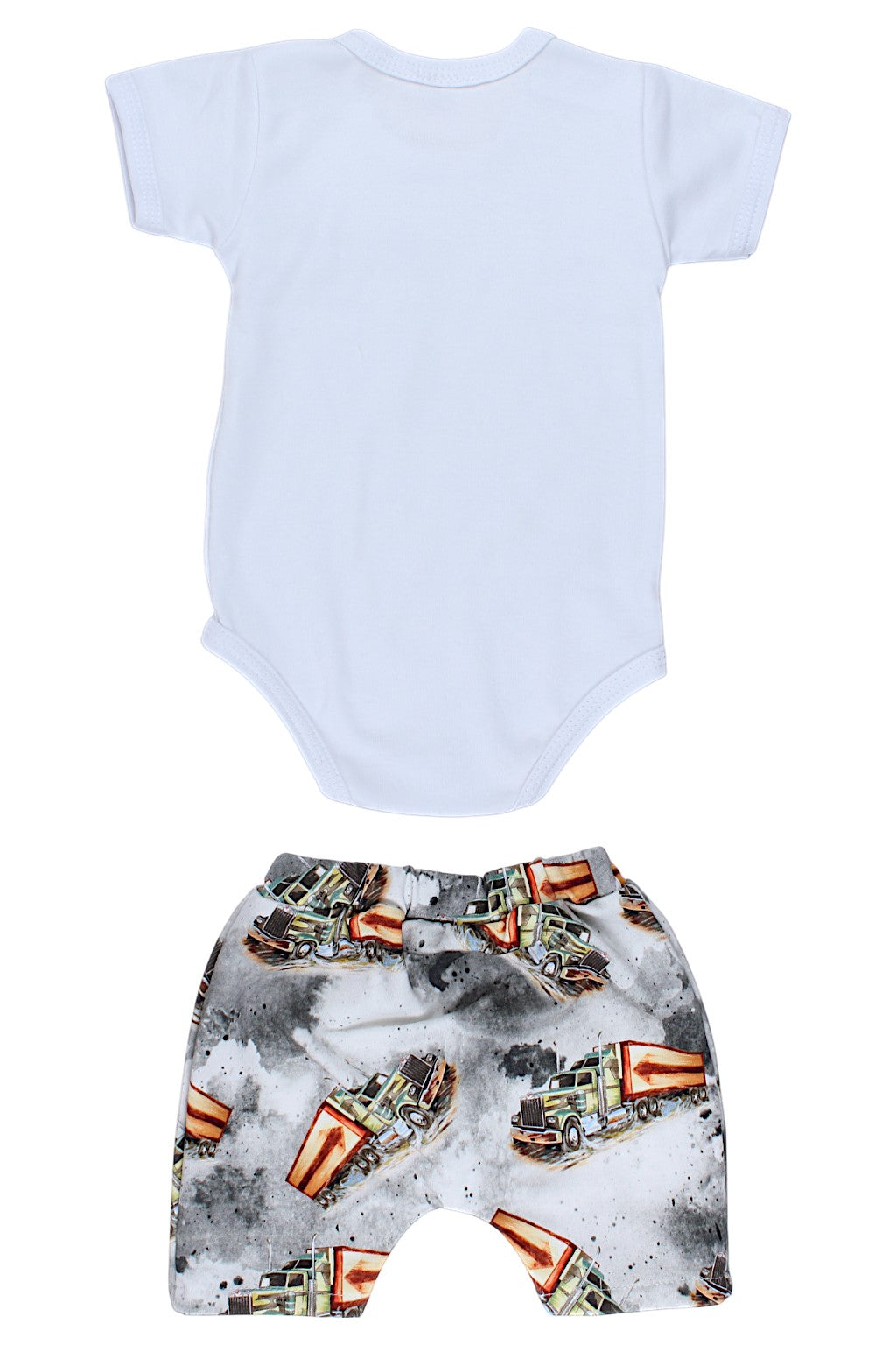 Wir präsentieren das TIR-Body-Set für Jungen von Guliwerkids , perfekt für Kinder im Frühling/Sommer. Dieses bezaubernde Set ist aus hochwertigen Materialien gefertigt, die sowohl Komfort als auch Langlebigkeit garantieren. Die graue Farbe bietet eine perfekte Basis, die sich leicht mit anderen Kleidungsstücken in der Garderobe kombinieren lässt. Der Body hat ein stilvolles Kurzarm-Design, sodass sich Ihr Kind auch an wärmeren Tagen darin wohlfühlt.