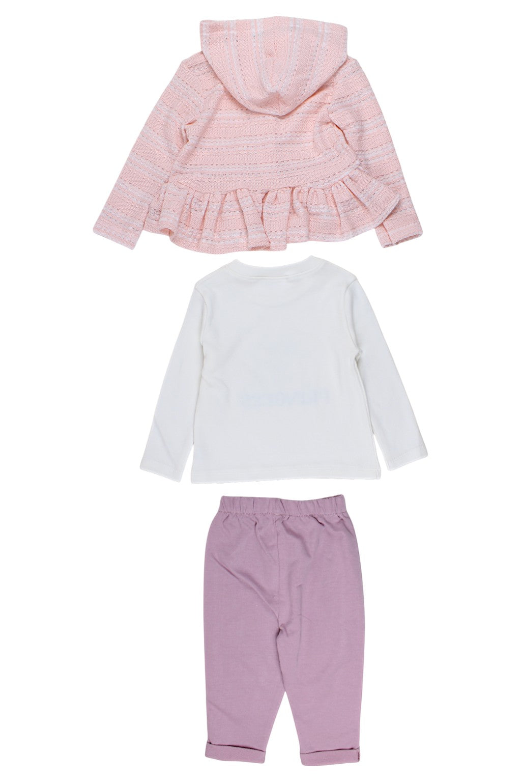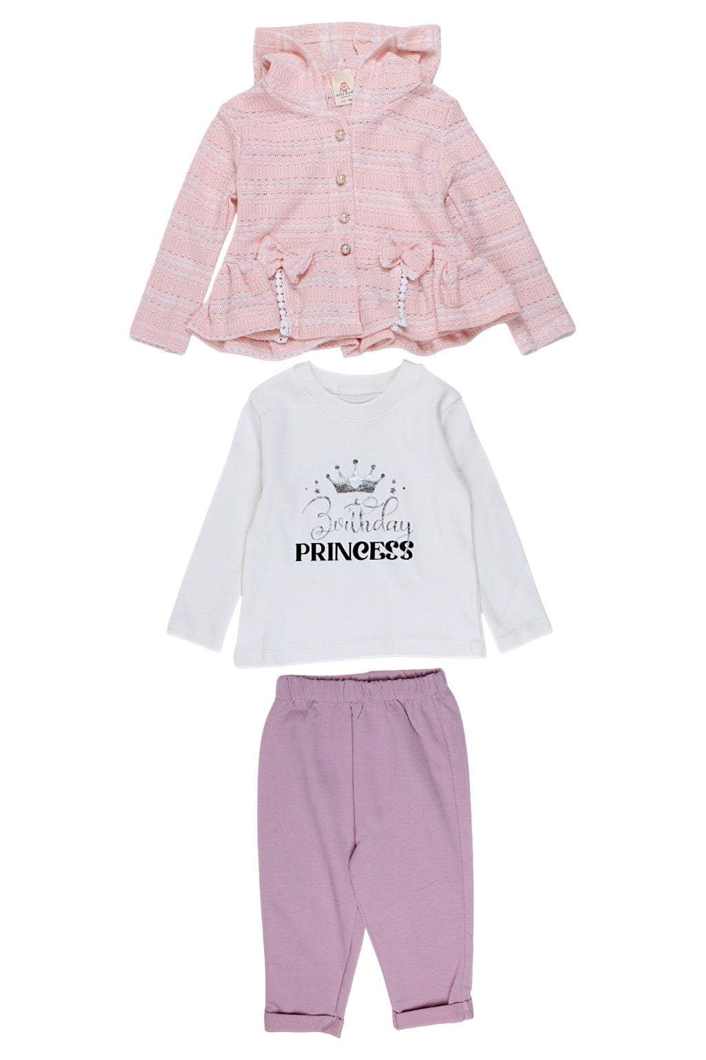 Ein zartes Mädchenset mit einem apricotfarbenen Pullover