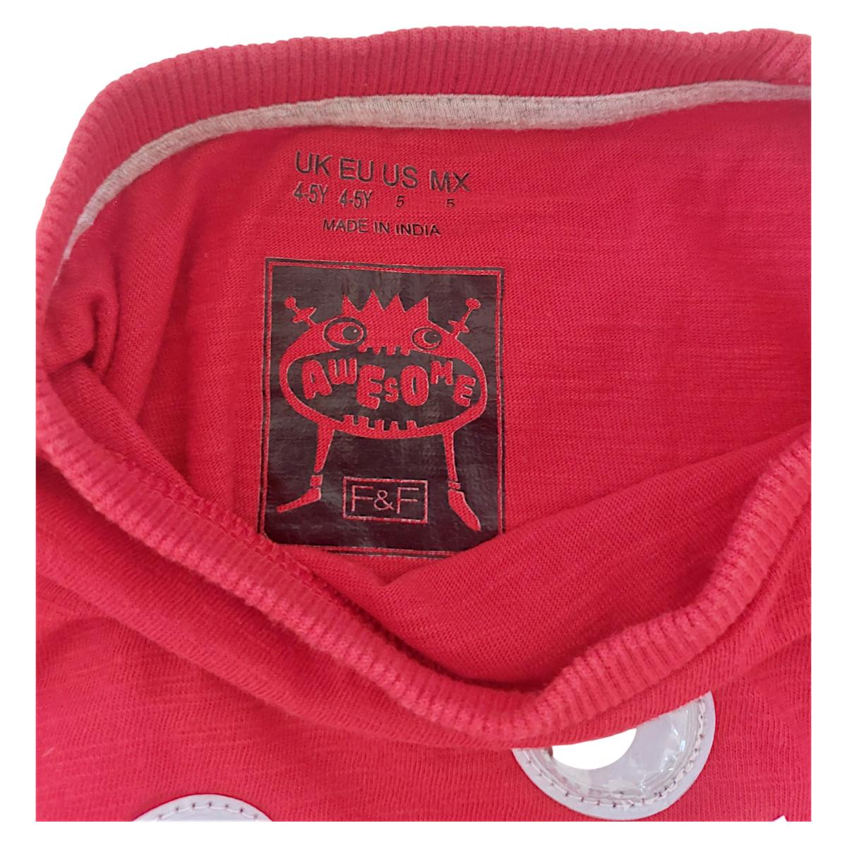 Dieses bezaubernde Kindershirt besticht durch seine leuchtend rote Farbe und ist ein echter Hingucker für Ihr Kind. Ein großes, fröhliches Lächeln ziert die Vorderseite und macht es perfekt für den Alltag. Das Material fühlt sich weich an und ist angenehm zu tragen. Die langen Ärmel machen es perfekt für kühlere Tage. Das Shirt ist in gutem Zustand und weist keine sichtbaren Beschädigungen auf.