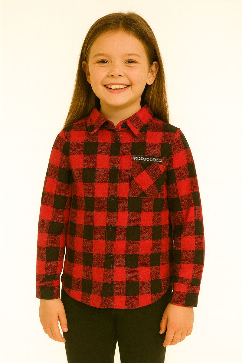 Dziewczęca koszula w czerwoną kratkę Lambda