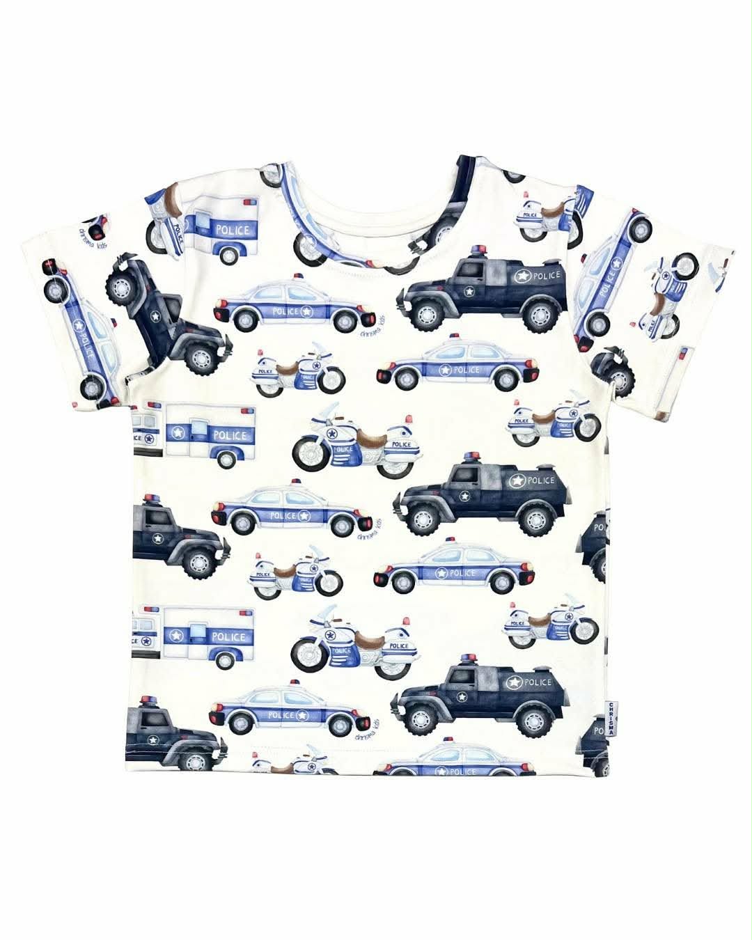 Chłopięca koszulka z motywem policji w kolorze niebieskim od Chrisma Kids